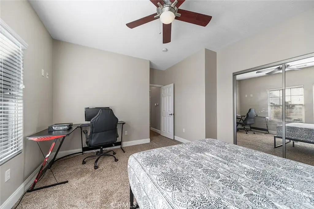 The backyard has been newly landscaped with fresh, low-maintenance turf and a planter bed that runs along the full perimeter of the yard. Newly planted palms add vertical interest and a warm desert aesthetic, while updated landscape lighting creates an inviting ambiance in the evenings. It’s the perfect setting for outdoor dining, lounging, or simply enjoying peaceful time at home.