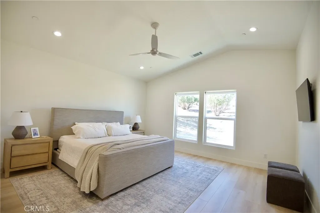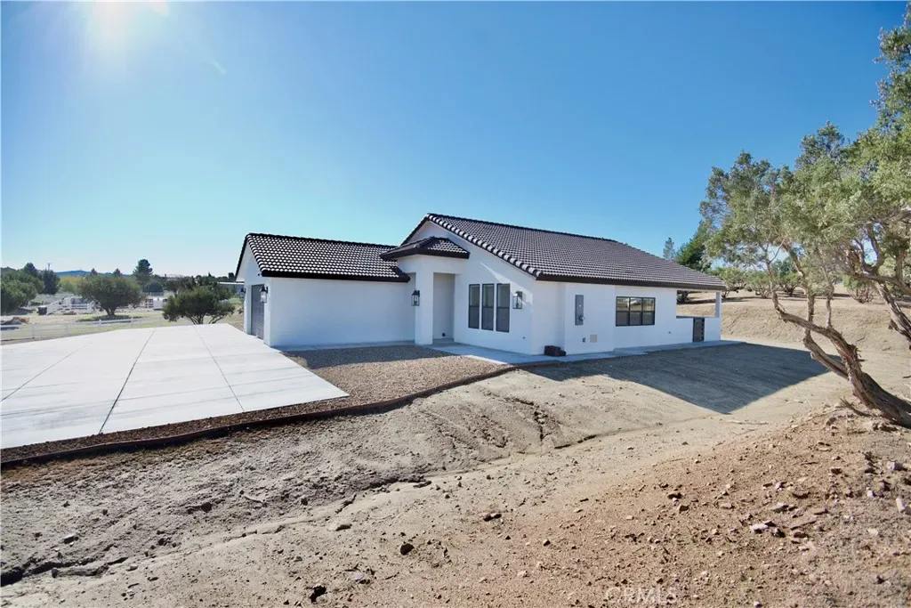 NEWER CONSTRUCTION!! WEST OAK HILLS!! ON PAVEMENT WITH NATURAL GAS AND NO SOLAR TO ASSUME!! This beautifully designed 3-bedroom, 2-bathroom property combines modern luxury with smart-home convenience. Step inside to find LVP flooring throughout, custom cabinetry, and stunning quartz countertops that elevate the home’s clean, modern design. The open living spaces are enhanced with automatic custom blackout shades, upgraded lighting, beautiful electric fireplace, stainless steel appliances and extra large kitchen island for entertaining. The spacious primary suite offers a true retreat with large primary walk in closet, primary bath with large double sink vanity and walk in shower with dual shower heads for a spa-like experience. Both bathrooms feature sleek smart toilets, adding another layer of modern convenience. This home is fully equipped with advanced smart technology, including a battery-powered surveillance system with mobile app capability, smart garage door access, keyless entry doors and a solar-powered entry gate with remote and mobile app control. The oversized 2-car garage with a 10-foot ceiling provides ample space for vehicles, storage, or a workshop setup. Enjoy the privacy and room to grow that 2 acres of fully fenced land provides with additional value of the already graded pad at the rear of the property, ideal for a future ADU, shop or horse arena. Pad offers access from Aster Rd providing flexibility for additional structures, recreational use or equestrian amenities all while being conveniently located on pavement in one of the High Desert’s most sought-after communities.