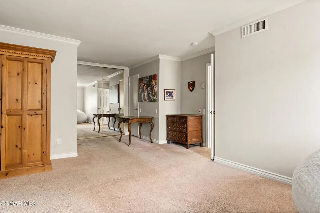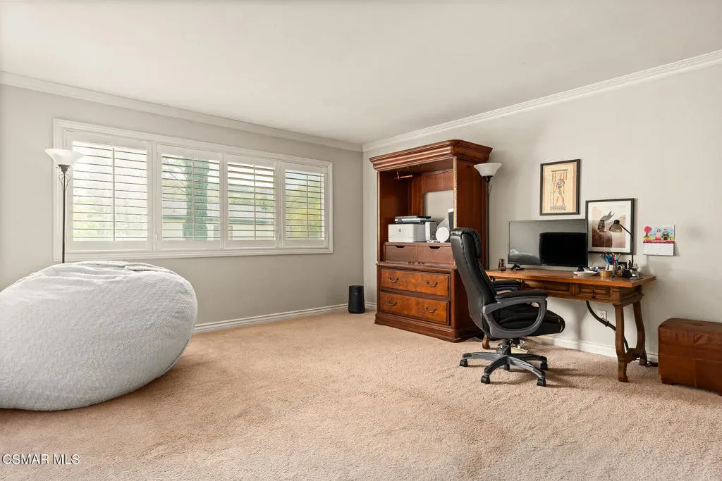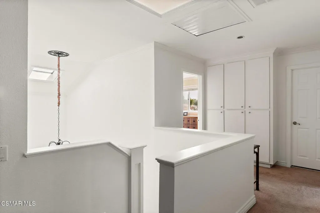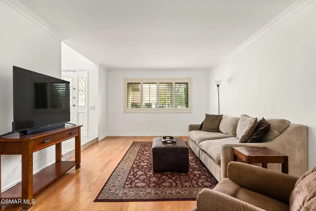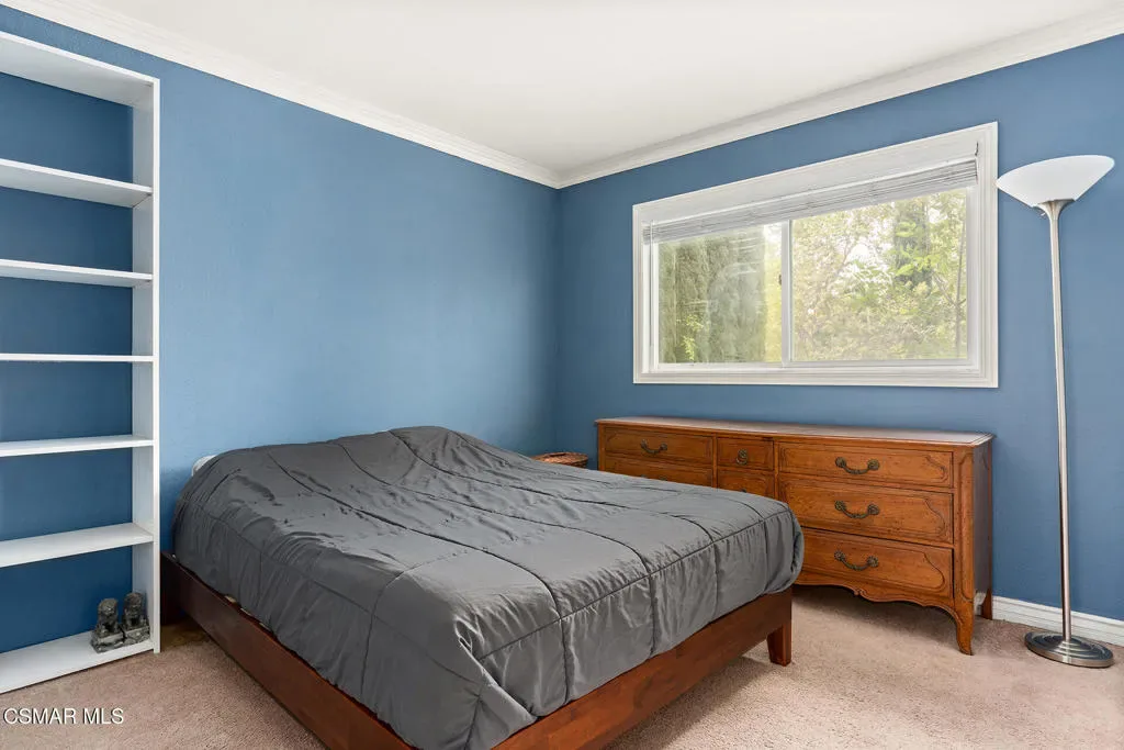 Located in the desirable community of Oak Park, this 5-bedroom, 3-bathroom home offers 2,561 square feet of living space on an 8,571 square foot corner lot–an opportunity to get into a great neighborhood with strong long-term value.As you enter, you’ll notice the high ceilings and natural light coming through the skylights, giving the space an open and airy feel. The entry leads into a step-down living room that connects to the formal dining area, creating a layout that works well for both everyday living and hosting.The kitchen features freshly painted cabinets, generous counter space, and plenty of storage, along with a peninsula that’s ideal for casual meals or a functional workspace. Just off the kitchen is a casual dining area that opens to the family room, making it easy to stay connected throughout the main living spaces.A full bedroom and bathroom are located downstairs, offering flexibility for guests, a home office, or extended family. The downstairs has also been freshly painted, adding a clean and updated feel.Upstairs, the primary suite includes a spacious bedroom, ensuite bathroom, and walk-in closet. Three additional bedrooms are located upstairs and are complemented by a full hall bathroom.The backyard includes a covered patio, pool, and usable space to enjoy the outdoors and Southern California weather.Located within the Oak Park school district, known for its highly rated schools, and close to local parks, trails, and community amenities, this home offers a solid foundation in a well-regarded area, with room to make it your own over time.