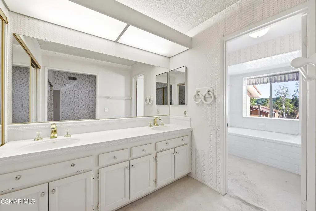 Opportunity awaits in Oak Park’s sought-after Country Meadows community. Tucked at the end of a cul-de-sac, this attached single-family offers a versatile floor plan, scenic mountain and sunset views, and the chance to make it your own. The main level offers a desirable single-story living feel, featuring high ceilings in the living room, a fireplace, and access to a private balcony, with an adjacent dining room ideal for everyday living and entertaining. The kitchen includes a breakfast nook and additional storage. The spacious primary suite is conveniently located on the main floor and features high ceilings, an ensuite bath with dual vanities, a separate tub and shower, and a private toilet area. Two additional bedrooms and a hall bath with tub/shower combo complete the main level. Downstairs, a large family room or bonus space with built-ins, fireplace, bar area, and patio access offers flexible living and entertaining options, along with a fourth bedroom and full hall bath. Outdoor spaces are designed to enjoy the beautiful views, with room for dining and gathering. Additional highlights include direct garage access, guest parking just outside, and access to the community pool and spa. Don’t miss this exceptional Oak Park opportunity.