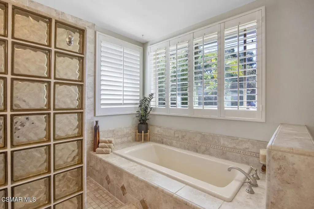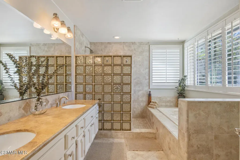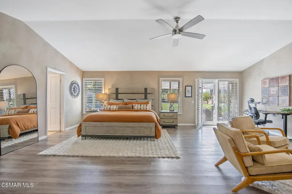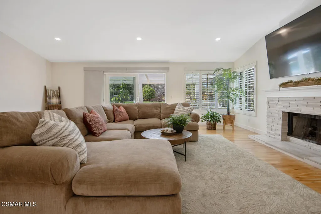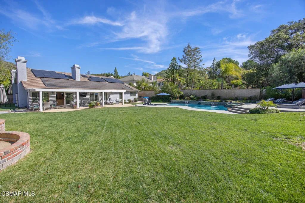 This beautifully updated one-story home in the sought after community of Sutton Valley in Oak Park on a rare almost 1/2 acre lot is truly exceptional. Starting with the curb appeal: stunning high end modern garage doors, gorgeous driveway with pavers, new drought tolerant landscaping and hard-scape, newer roof, pretty entry patio, and a new modern front door, the home is impressive from the minute you arrive. And there isn’t a better backyard in all of Oak Park. With the recently reimagined large pool and spa featuring a Baja shelf, lovely stacked stone and new tile, several waterfall features, a spacious outdoor patio for dining al fresco, a massive lawn for all kinds of fun, beautiful mountain views, several fruit trees, and a side yard with turf- the backyard is perfect for enjoying the indoor/outdoor lifestyle. With over 3,200 sq ft and 4 beds and 4 baths, the home has lots of natural light, large rooms and a terrific floorplan. The spacious living room has high ceilings and a cozy fireplace, and the gourmet kitchen features a center island with storage and seating, newer quartz countertops, custom tile backsplash, and stainless-steel appliances. The well-sized family room has a cool bar with sink for entertaining, lovely stone fireplace and sliders out to the resort-like yard. The large primary bedroom is a true retreat, with a third fireplace and sitting area, doors out to the backyard, walk-in closet, and spa-like bathroom with a dual vanity, large tub and custom tile. The repurposed atrium is an ideal space for a private office or yoga/work out room, and the 3-car garage has loads of storage, EV charger, and an epoxy floor. Located near shops and restaurants, great hiking trails, and award-winning Oak Park schools. Enjoy the best of So Cal living at your own private resort.