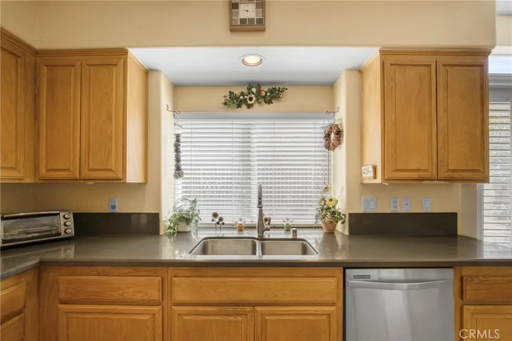 The backyard backs to mature greenery with the subtle presence of a small seasonal creek beyond, creating a calm and natural outdoor setting. Additional highlights include an indoor laundry area, direct access to a two-car garage, and access to community amenities including a pool and spa.