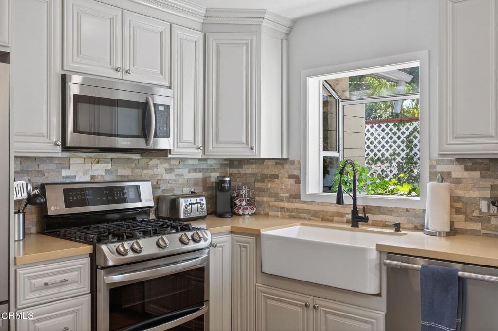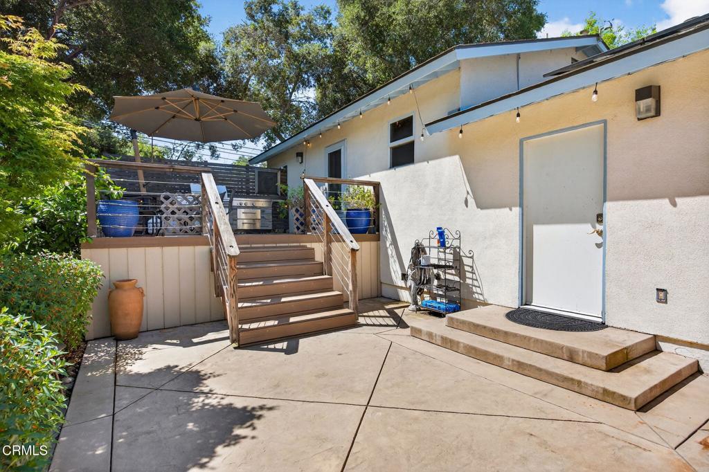 Updated 4BD/2BA Oak View home with remodeled kitchen and baths, engineered hardwood floors, newer windows, updated electrical, almost all copper plumbing, A/C, and newer furnace. The oversized 2 car garage sports epoxy floors, 240 volt plug, and Tesla fast charger. The main driveway is approx. 50′ x 24′, plus there is a second gated driveway approx. 125′ long, with 105′ behind the gate and approx. 27′ under carport coverage. Shed/shop at the end of the driveway with roll-up door, ideal for car projects, workshop use, or storage. Landscaped front and rear yards, rear deck with large island BBQ, professionally built pergola with shingled roof, and primary bedroom with deck access. Recent solar with Tesla Powerwall installed approx. 3 years ago. Additional shed and shop space on concrete with windows and shingled roofs. Enjoy the harvest from the producing citrus, apple, and guava trees. This is the perfect house when you need room for cars, RVs, projects, and outdoor entertaining!