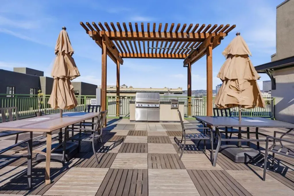 Welcome to urban living in the heart of Downtown Oakland! This spacious 1-bedroom, 1-bath condo offers 861 sq ft of comfortable living with a bright, open living room and soft carpeted floors throughout. The kitchen features stainless steel appliances, granite countertops, and ample cabinet storage perfect for both everyday living and entertaining. The generous bedroom includes a walk-in closet, while the convenience of in-unit laundry adds to the home’s functionality. Enjoy one assigned parking space and access to desirable community amenities including a private rooftop deck with breathtaking San Francisco skyline views and a resident-only patio area ideal for relaxing outdoors. Located just steps from the BART station, commuting to San Francisco and the greater Bay Area is effortless. Youll also be close to Uptown dining, entertainment, the Fox Theater, Jack London Square, and scenic Lake Merritt. Experience the perfect blend of comfort, convenience, and vibrant city living in this well-appointed Oakland condo.