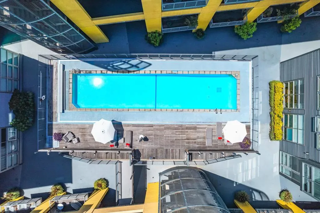 Amazing high-rise luxury penthouse loft in full amenity building! Enjoy elevated living in this stunning two bedroom two bathroom penthouse at The Sierra at Jack London Square. Designed by award-winning Kava Massih Architects. This top-floor residence combines soaring 18-ft ceilings, floor-to-ceiling bay window with breathtaking city views, and refined finishes throughout. The main level boasts a dramatic limestone entry, hardwood floors, sleek kitchen with refinished cabinets, new refrigerator, sunlit bedroom, Italian porcelain bath, and in-unit laundry. Upstairs, a private loft suite includes a spacious ensuite bath and a large private terrace ideal for upscale entertaining or tranquil mornings. Thoughtful upgrades include new carpet, designer paint, Lutron dimmers, recessed LED fixtures, custom closets, and air conditioning. Includes two rare side-by-side garage spaces. Enjoy full-service luxury amenities: fob access control building, 24/7 concierge, heated lap pool, fitness center, sauna, media room, two conference rooms, bicycle storage, and WIFI in select common areas. Walk Score of 93, walk to trendy Jack London Square, waterfront dining, wineries, breweries, coffee houses, live entertainment, farmer’s market, Oakland estuary, SF Ferry, BART, Amtrak, freeways and more.