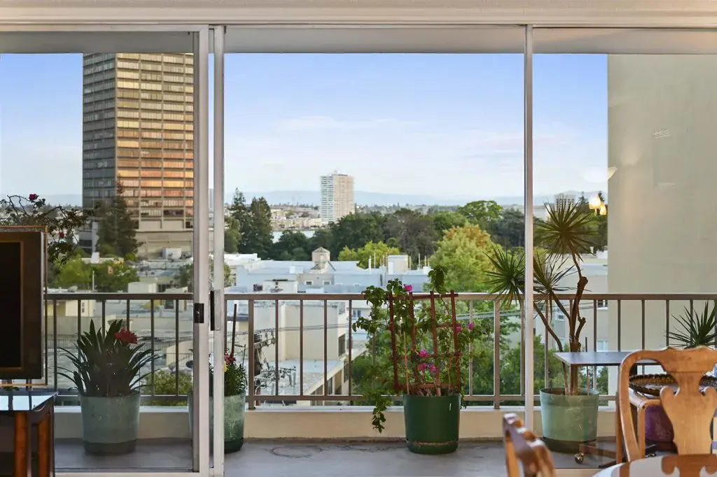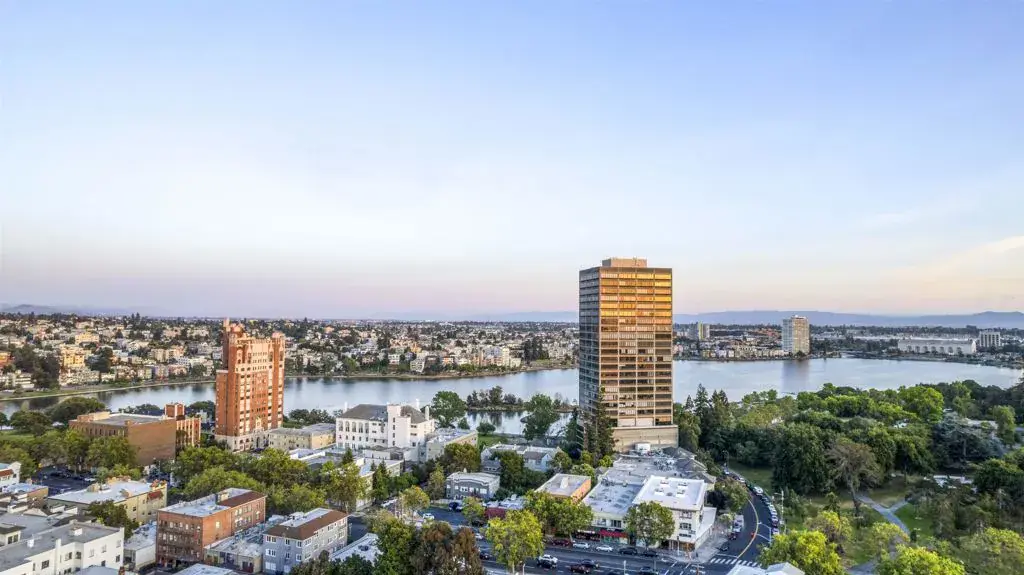 Sunny views in the heart of Adams Point! This sophisticated 4th-floor end unit in the coveted Van Buren Tower sits in the heart of Adams Point with its sweeping views of Lake Merritt, Downtown Oakland, the hills, the Bay, and beyond. Floor-to-ceiling windows in every room fill the home with natural light, while the private balcony offers front-row seats to sunsets, city lights, and peaceful moments above it all. Inside, over 1,000 sq. ft. of well-designed living space awaits. Located in the desirable “05 stack,” the kitchen and breakfast bar open into the living area—ideal for entertaining and everyday living. White oak parquet floors add warmth throughout the space, and the updated kitchen and bathrooms make this home move-in ready. The primary suite includes a private full bath, while the second bedroom and hall bath offer flexibility for guests, a home office, or both. Van Buren Tower offers gated garage parking, secure elevators, app-based laundry, EV charging, bike storage, extra locked storage, outdoor terraces, and a pet-friendly vibe. Just blocks from Whole Foods, Trader Joe’s, Lake Merritt, and Oakland’s best restaurants, cafés, and nightlife—with easy access to BART and major Bay Area routes. Shown by appointment. Views: Downtown