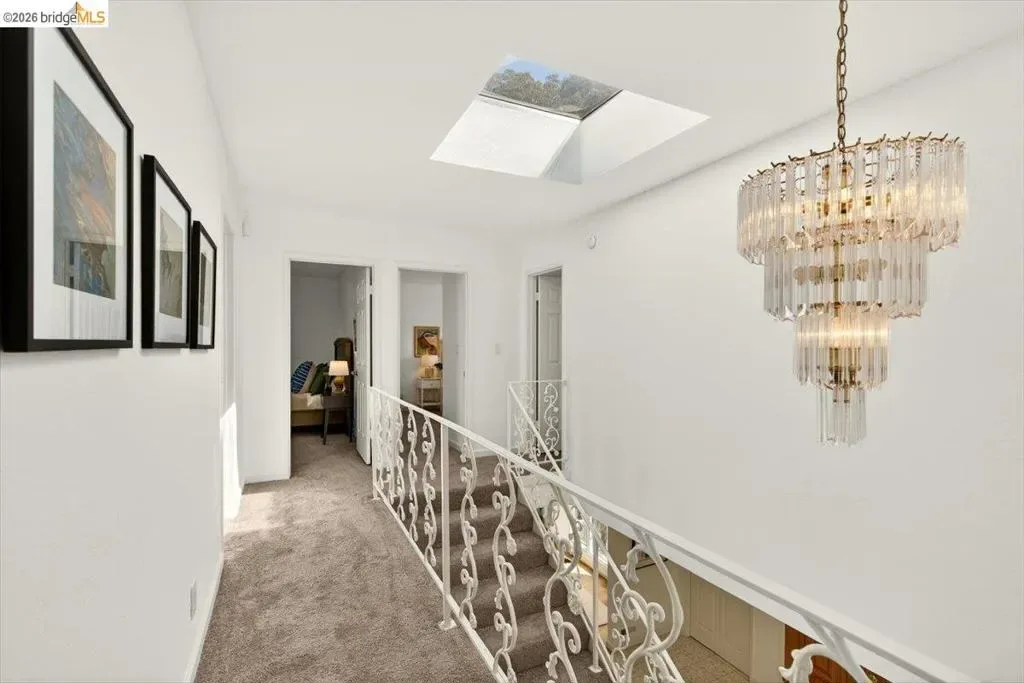 This light-filled home blends privacy, open space, and a layout designed for life. Living room and Family room both have fireplaces and access to backyard. Updated Kitchen with an herb window. Breakfast nook opens to the backyard. Upstairs the primary Bedroom has a private patio, three additional bedrooms offer flexibility for growing family, guests, or office use. A generous 600+/- Bonus room with kitchenette is ideal for media, play space, or extended living. Patios, dog run, basketball ready driveway and nearby trial access to Skyline make outdoor living easy. New Roof, Updated baths, new appliances. Two car garage with driveway space for 2 more. Convenient to Hwy 580 & a favorite neighborhood pizza spot. This Oakland hill home offers privacy, flexible space, beautiful views, and room for gathering, play and gardening.