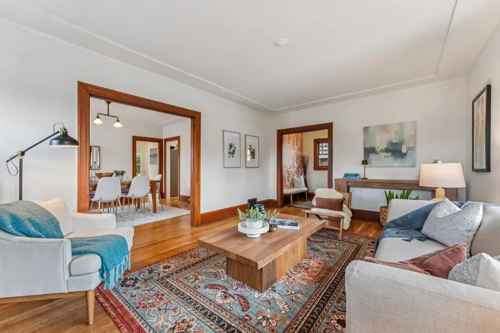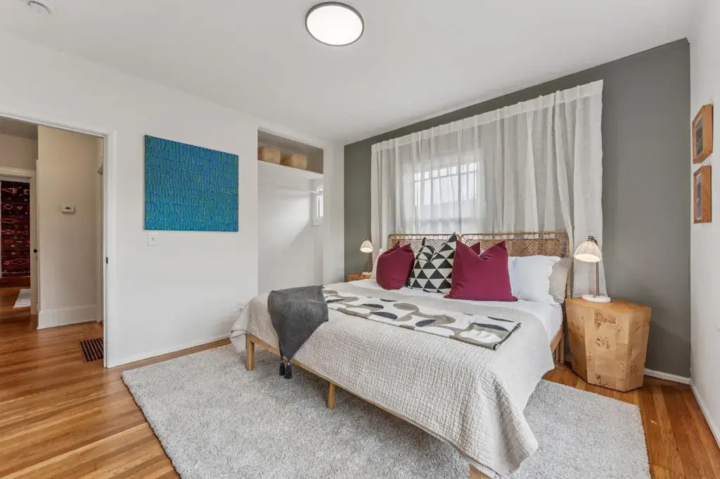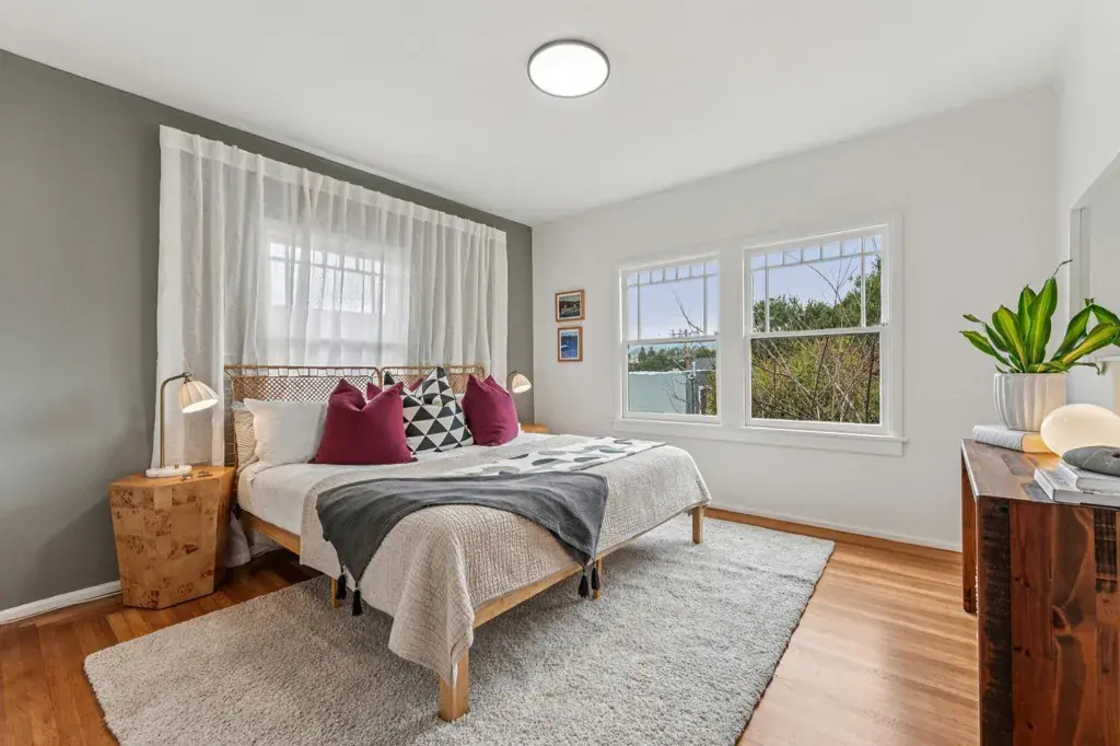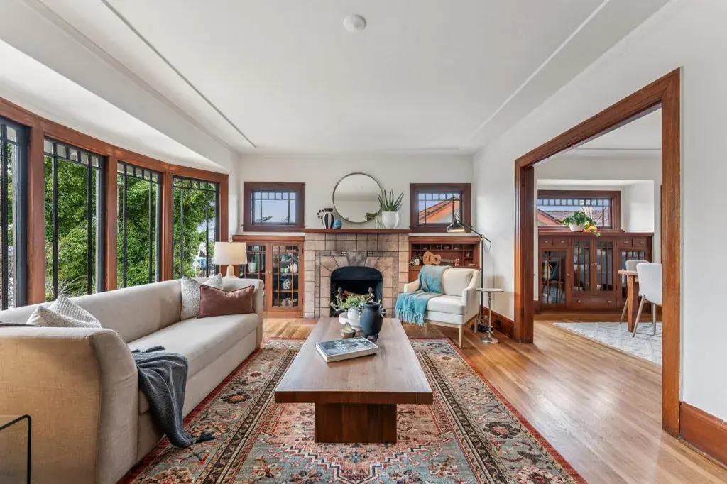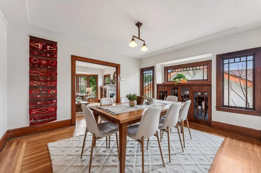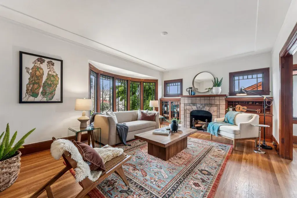 Nestled in the heart of Bella Vista lives a quintessential 1920’s Craftsman with a magical park-like garden. Love original details? Enjoy a welcoming front porch, natural wood trim, glass-front built-ins, art tiled fireplace, Prarie-style bay windows, gleaming hardwood floors and an elegant foyer with designer wallpaper. Layout is airy with great flow. Who doesn’t love an open and modern kitchen? Freshly renovated, with new cabinets, modern countertops, crisp white tile, and stainless steel dishwasher and refrigerator (2026). All that and a sunny breakfast alcove, Viking stove and convenient side yard access. Want options? Use the downstairs flex space as 3rd bedroom, home office, art studio or guest quarters. A half bath/laundry and separate entrance offer potential for rental income. Large interior-access garage has ample room for storage, maker space and a car. Ever dream of hosting a backyard wedding? Follow the red brick path through a lush backyard with mature plantings, deck, grape vines and hidden goddesses. Manifest your imagination. Got chickens? There’s room for them too! Quiet neighborhood with awesome neighbors. EZ access to 580 and public trans. Glenview stores and restaurants are nearby.