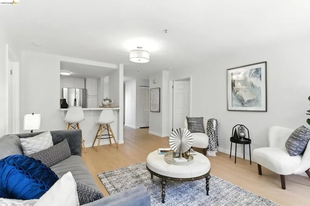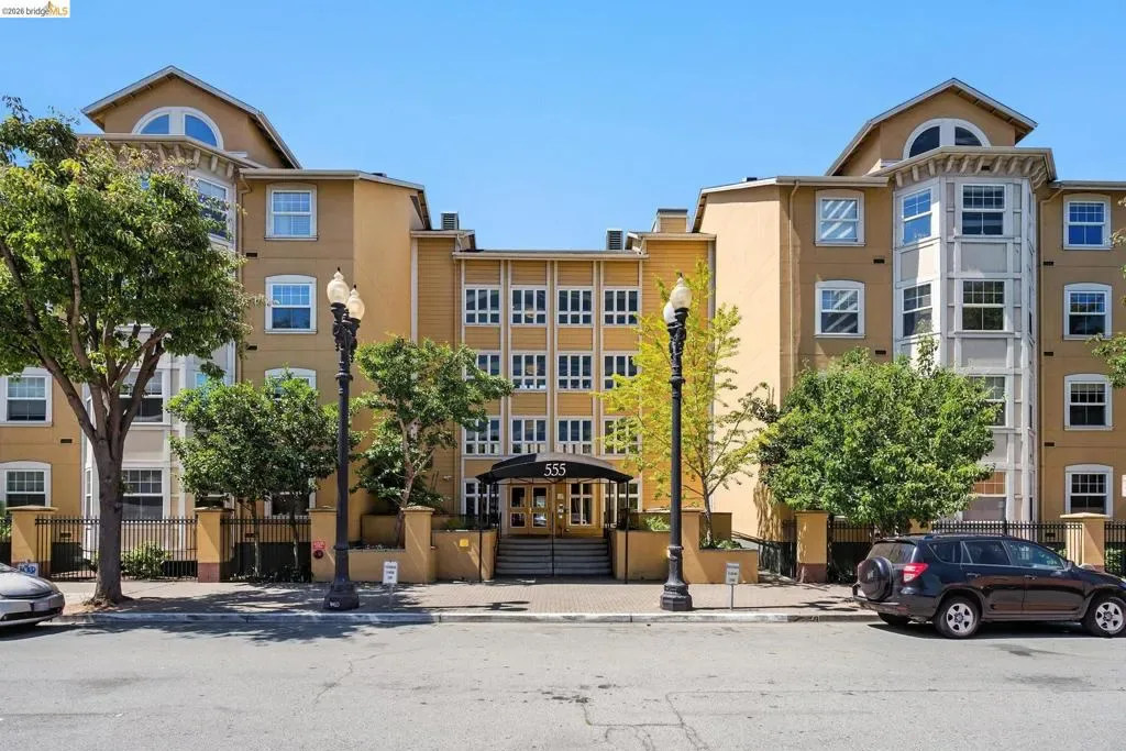 Welcome to a modern oasis in the heart of Oakland at 555 10th Street, Unit 201. This stunning 2-bedroom, 2-bathroom condo features 906 sq/ft of thoughtfully designed living space. With a seamless open layout, the living, dining, and kitchen areas flow effortlessly, offering a perfect setting for both relaxation and entertaining. The unit comes equipped with a primary bedroom suite and the convenience of a washer and dryer, ensuring that your daily routines are as efficient as possible. Embrace modern lifestyle with premium amenities including an elevator, assigned garage parking, and a secure entrance with a security gate and voice intercom. Residents can enjoy the tranquility of a common garden and the vibrancy of a media/recreation room and resident’s lounge. Untra close to bustling coffee shops such as blue bottle, The Caffe by Mr. Espresso Bar, BART, and the cultural hub of Oakland Chinatown, downtown, and Jack London Square; the location offers unparalleled accessibility to the city’s finest attractions and amenities. Whether you’re looking for a fresh start or a convenient urban retreat, this residence provides a perfect blend of style, location, and ease. Discover your new beginning at 555 10th Street, Unit 201, where urban sophistication meets everyday comfort.