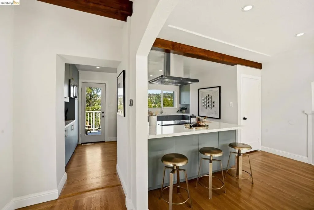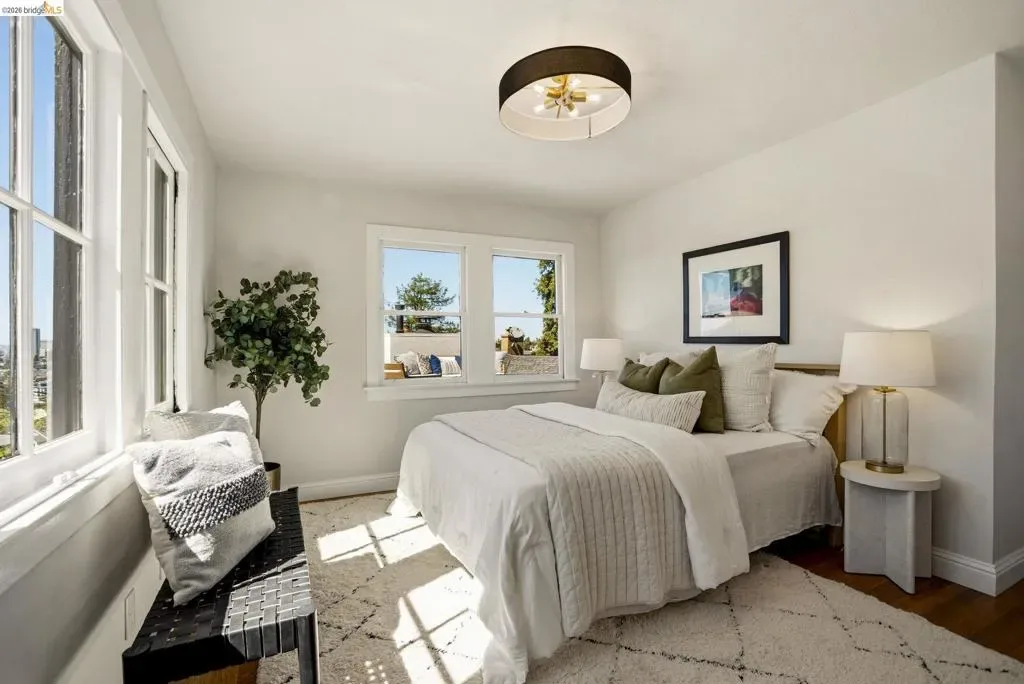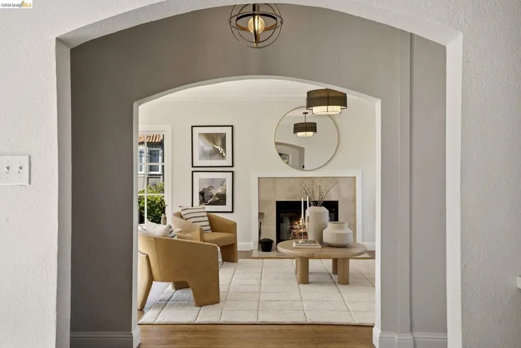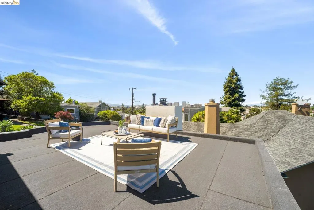 Circa 1919 Mediterranean in coveted Crocker Highlands, offering timeless architecture w/ thoughtful updates & exceptional indoor outdoor living. Ideally located near an award-winning elementary school & just blocks to Lakeshore & Grand Ave shops, dining, Lake Merritt, Trader Joe’s, the Saturday Farmers Market & Michelin-rated Bardo, w/ quick access to the Bay Bridge for an easy San Francisco commute. Surrounded by expansive, tranquil gardens w/ meandering paths, this property features a large level yard & patio ideal for entertaining & play, plus multiple outdoor spaces including a deck off the lower level & rooftop access w/ sweeping views & future potential. Light-filled interiors showcase a living room w/ plate glass windows & neighborhood vistas, an elegant dining room w/ vintage built-ins & tray ceilings, & an updated kitchen w/ quartz countertops, breakfast bar, ample cabinetry & stainless appliances. The primary suite offers serene views & rooftop access, while a split-level layout provides privacy & functionality. A lower-level ADU w/ private entrance includes a renovated kitchen, bedroom, bath & den opening to a peaceful deck. Hardwood floors throughout & attached one-car garage complete this rare offering. Open Satuday & Sunday 2-4:30 PM Views: Downtown