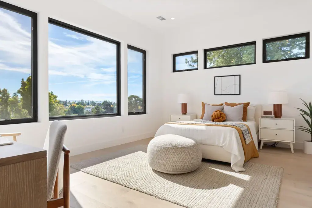 Another stunning, ground-up, new construction in Crocker Highlands by Cube Builders! Designed with a curated contemporary aesthetic that complements the neighborhood’s architectural character, this home features clean modern lines, expansive windows, warm cedar shingle accents, and exceptional indoor-outdoor flow. The main level offers an ideal floor plan: a spacious great room with wide-plank oak flooring, abundant natural light, and an effortless connection to the dining area and chef’s kitchen. Large sliders open directly to a level-out backyard with lawn and a dramatic covered patio, perfect for year-round entertaining. Upstairs, all four bedrooms are en-suite, a rare and highly desirable layout. The primary suite includes a stunning modern bath and generous scale while Bay views add a quiet layer of luxury. The additional suites provide comfort and flexibility for family, guests, or work-from-home needs. Thoughtfully built and beautifully finished, 761 Calmar brings together modern design, craftsmanship, and functionality in one of Oakland’s most friendly and sought-after neighborhoods.