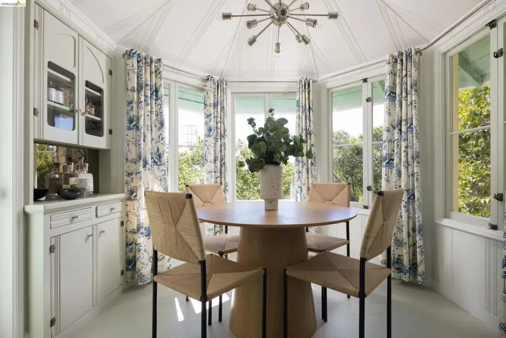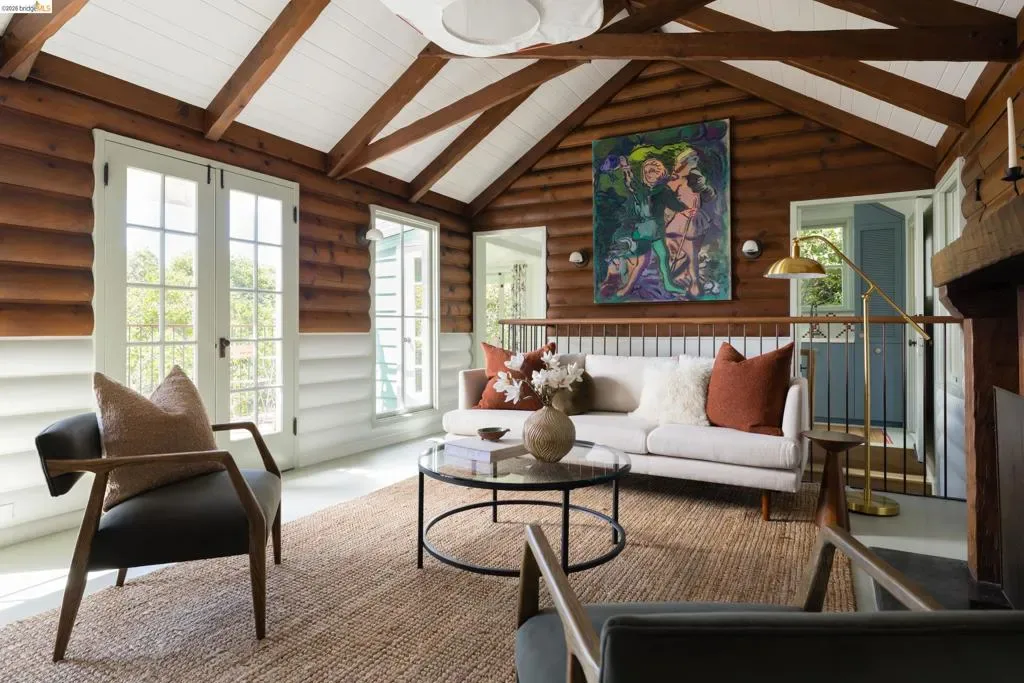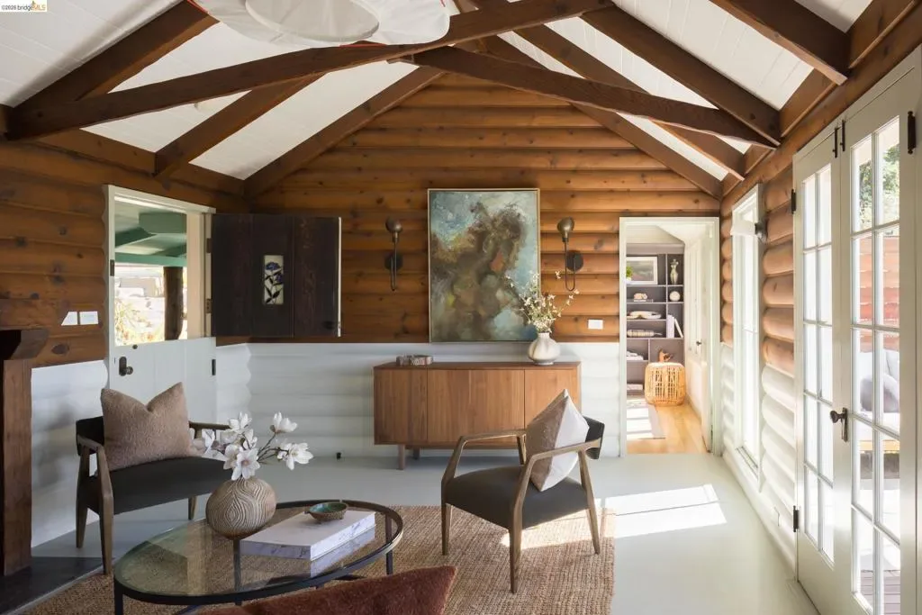 Featured in Architectural Digest, this brilliantly reimagined hillside home in Oakland’s coveted Glenview neighborhood reflects a rare and refined vision of preservation and contemporary design. An innovative collaboration between McGriff Architects and Becky Carter Interior Design Studio celebrates the character of the original 1932 home with extensive upgrades throughout. The 3-bed, 3-bath main residence preserves the cabin’s quiet charm while revealing a carefully layered architectural transformation within. The light-filled living room remains the heart of the home, framed by exposed beams and an original flagstone fireplace, and flows onto a private deck retreat perched among majestic oaks with expansive views reaching the Bay and the peaceful glen below. The kitchen and dining areas embrace crafted simplicity and character-forward design, reflecting the home’s joy, warmth & thoughtful detailing. An expanded lower level offers modern, private quarters with convenient laundry, enhancing both livability and flow. A complementary detached studio cottage with its own kitchen, bathroom, and deck offers an inviting space perfect for guests, WFH, or a quiet retreat. Together, architecture, interior design, & nature create a home that feels both timeless and quietly extraordinary.