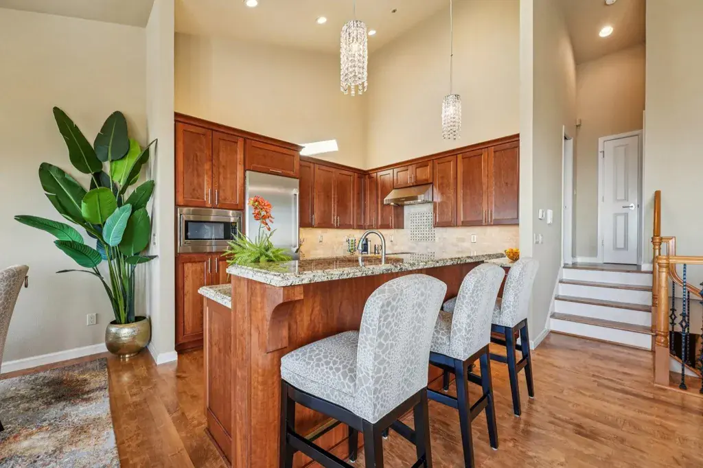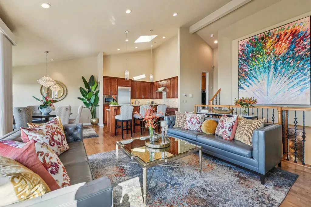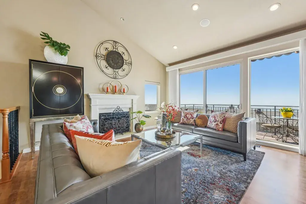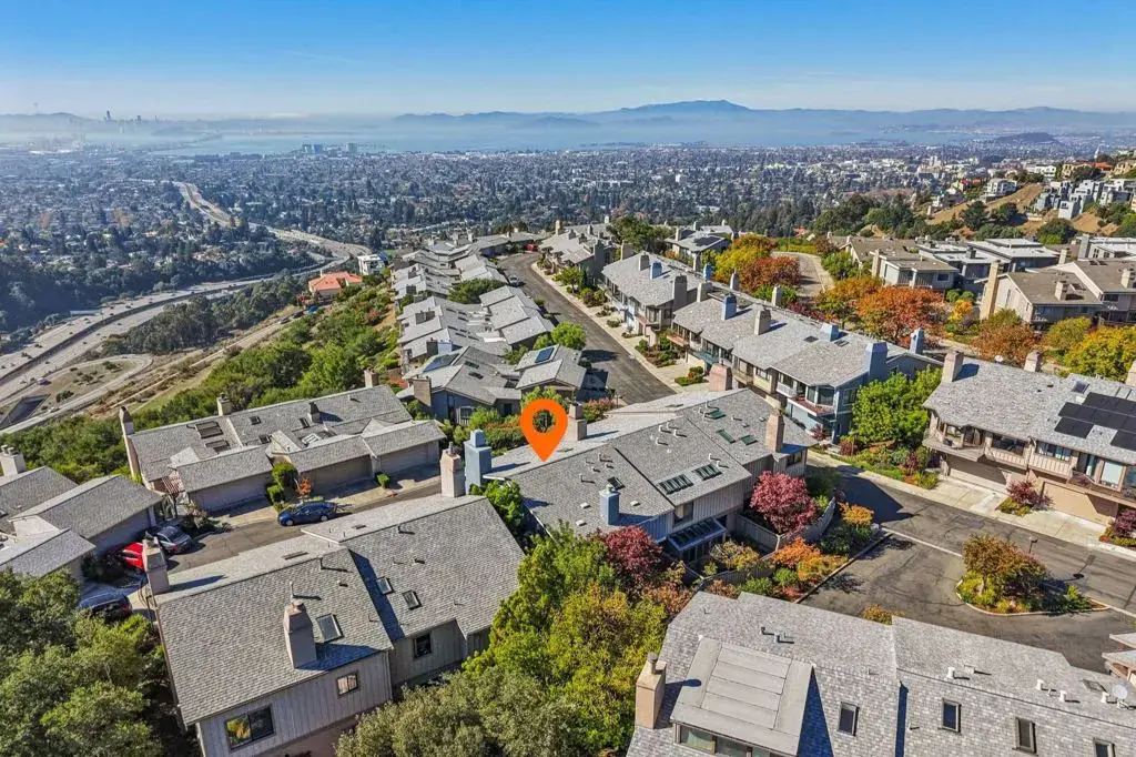 Magical townhome with panoramic “3-bridge” San Francisco Bay views in prestigious Hiller Highlands. This premium corner residence sits on a coveted cul-de-sac and has been lovingly maintained by its conscientious owners, who invested over $300K in fully-permitted, high-end upgrades since 2012 – including a custom kitchen, spa-quality baths, new windows, doors, skylights, and more. The result is a refined sense of warmth and timeless sophistication, far beyond today’s common “white-and-grey” remodels. The main level features an airy open-concept layout where the kitchen and dining areas flow seamlessly to a balcony with sweeping Bay vistas – perfect for indoor/outdoor dining and entertaining. The luxurious primary suite on this level offers a spa-like bath and generous walk-in closet. Downstairs, you’ll find two additional bedrooms, a full bath, laundry room, and a tranquil private garden with waterfall and lush greenery. The street level offers an oversized two-car garage plus an extended driveway – an uncommon amenity in this community. Enjoy the serenity of surrounding walking paths and natural beauty, all just minutes from Rockridge and Elmwood shops, AC Transit, and Highways 13 and 24. Experience the very best of elevated Oakland Hills living. Views: Downtown