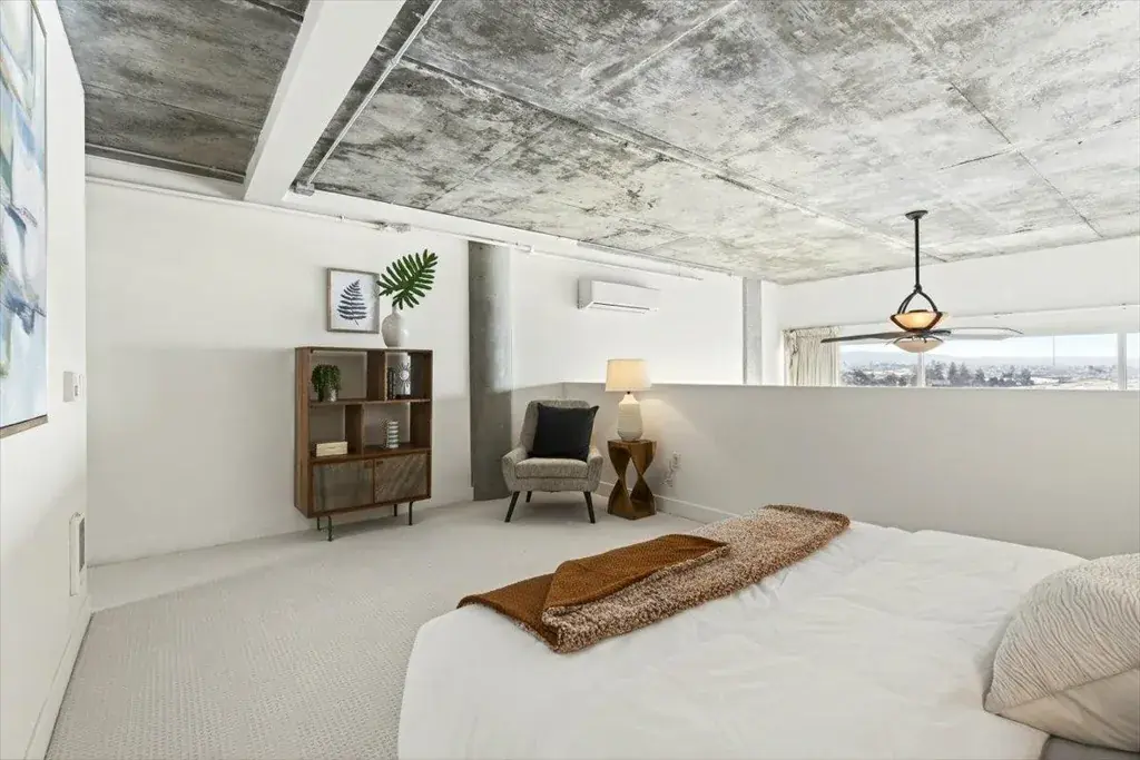Sophisticated, urbane, and effortlessly chic, this sun-drenched loft residence offers refined city living in Oakland’s coveted Jack London District at The Sierra. Soaring volume and floor-to-ceiling windows create a light-filled open concept living space with serene glimpses of sailboats and distant hills as your daily backdrop.The expansive bedroom loft provides a peaceful retreat with a large closet and ample wall space for custom furnishings or a private work-from-home setup. Beautiful carpet and warm maple hardwood flooring add radiance and comfort while perfectly complementing the cool, modern contrast of exposed concrete ceilings and architectural columns. Residents of The Sierra enjoy resort style amenities including 24/7 concierge service, a fully equipped fitness center, lap pool, sauna, media and conference rooms, billiards lounge, and an on site deli. An exceptional Oakland lifestyle awaits, with dining, breweries, waterfront paths, retail, and entertainment just outside your door. Enjoy smooth access to BART, SF Ferry, Amtrak, and major freeways moments away.