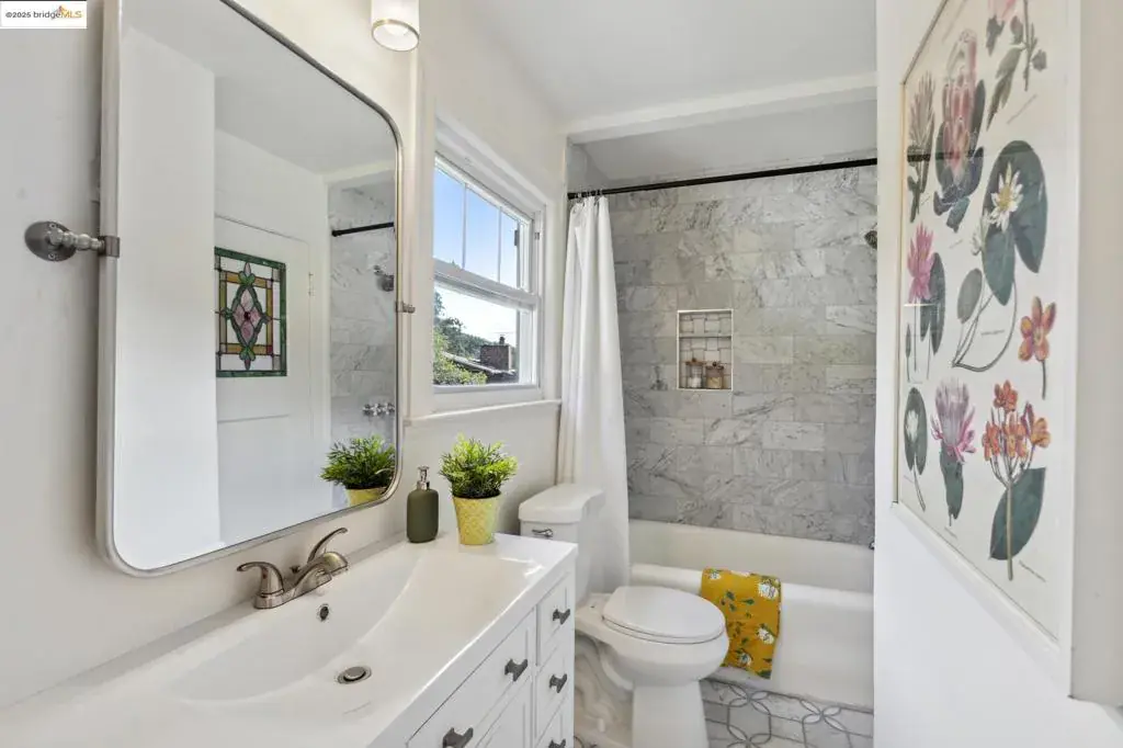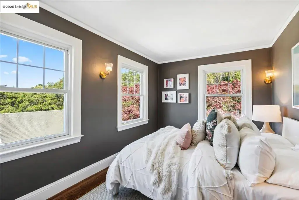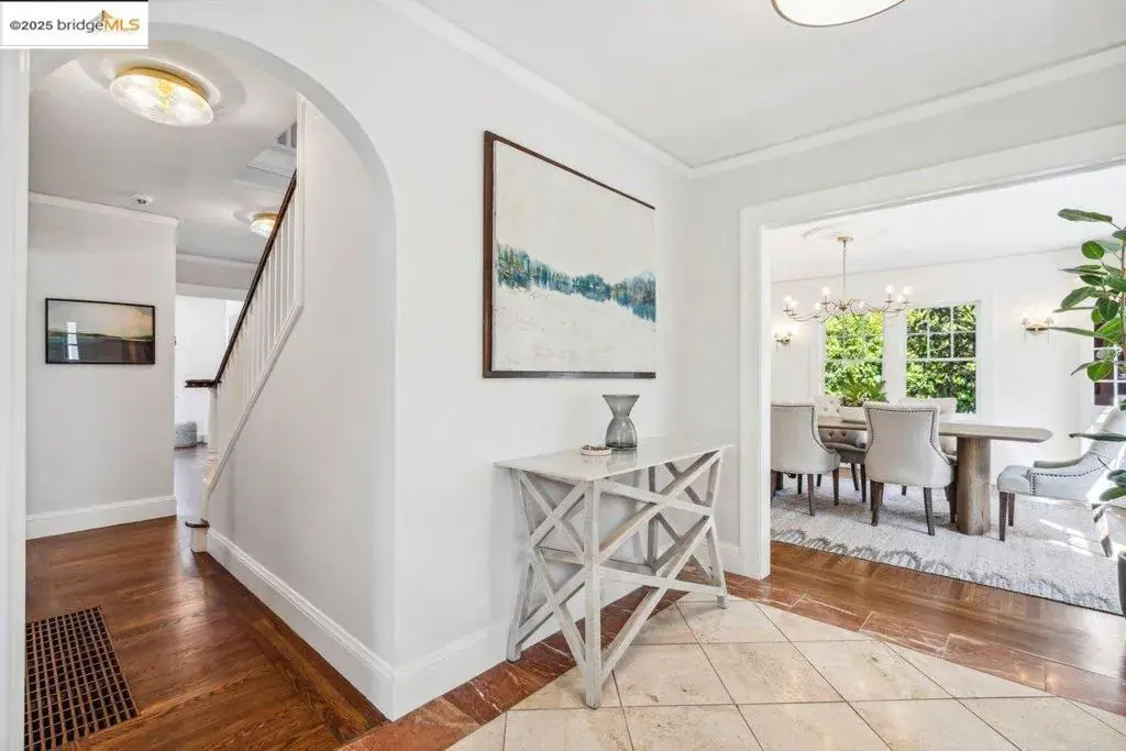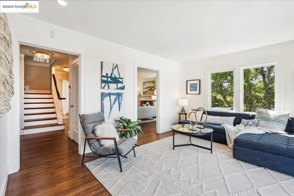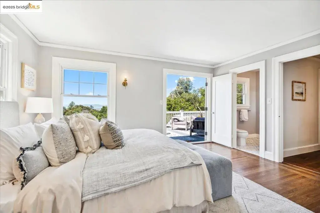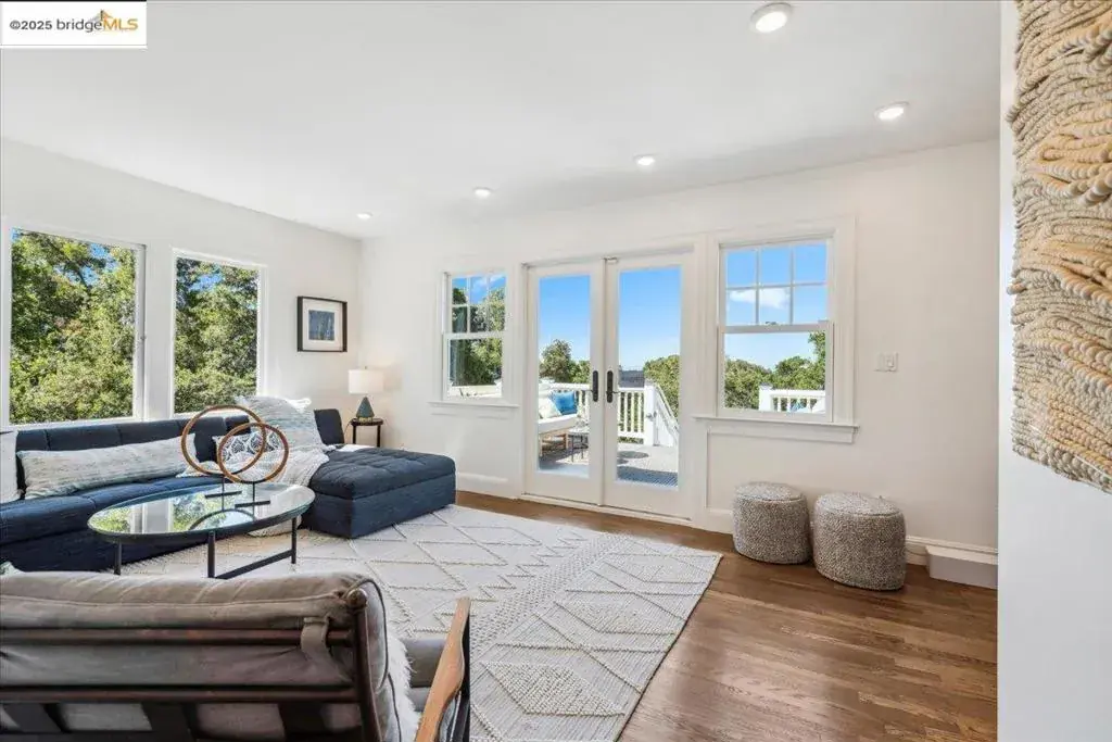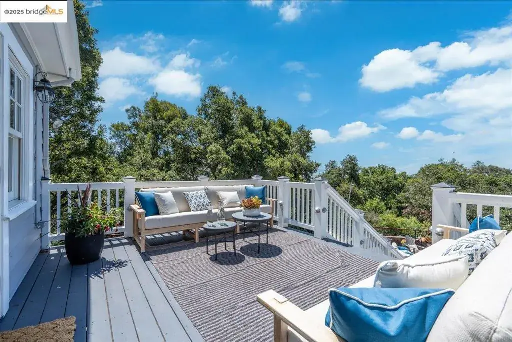 Rare opportunity to own a tranquil hillside 5 bedroom,4.5 bathroom estate with an additional 1/2+ acre separate parcel (>$200k value) Two APNs totaling 1+ acre compound! Bay views, a truly park-like setting offers a retreat mere steps from the bustle of Oakland’s parks and recreation. Recent $250k+ remodel for multi-generational living, this elegant home boasts approximately 3,191 square feet. The primary suite is a true sanctuary, complete with private viewing deck, perfect for sun-bathing, yoga or quiet reflection. The home’s ideal layout includes four beds, two baths on the upper level, while the main floor features formal living, dining, a spacious kitchen with a large five ft island with built in cabinets and drawers for work station or informal dining, TV family room opening to a large outdoor deck—perfect for entertaining. The lower level offers a private au pair suite with sep entrance, 1 bed, 1 bath, and laundry room. Additionally, a separate 371-square-foot art studio, work out room, workspace potential for a guest house. In total, the property provides 3,434 square feet of versatile living space with room to build a second home for a family compound or rental unit. Rockridge Bart, Hwys 13, 580, 24. Joaquin Miller, Head Royce, Montclair, Redwood Heights
