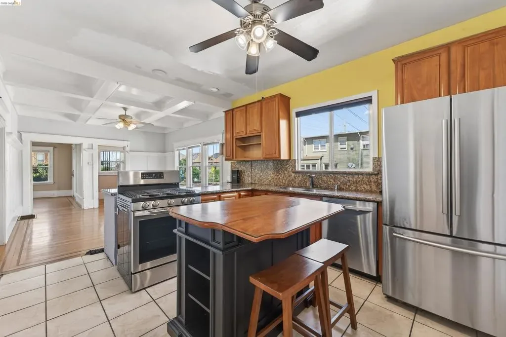 Here’s your opportunity to create a home that reflects your vision. With some sweat equity, this livable 1,825 sq ft home offers endless potential. Set in a neighborhood known for its strong sense of community, this sun-filled 1911 home retains many original details. The living room features pocket doors, inlaid oak floors, and an original fireplace with built-ins. The dining room offers large windows, a box-beam ceiling, and inlaid wood floors. The open kitchen includes granite counters and stainless-steel appliances. This level also has three bedrooms and two bathrooms. The lower level provides potential for an ADU or guest quarters, with a bedroom, bathroom, kitchenette, and separate entrance—ideal for multi-generational living or rental income. The fully fenced backyard is a private retreat with space to garden or relax, plus mature lime, lemon, fig, pluot, and grapefruit trees. Ideally located between Emeryville, Temescal, and Berkeley, the home offers convenient access to a variety of commuter options. It’s a short walk to Children’s Hospital and MacArthur BART, with quick access to major highways.