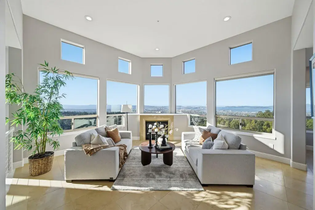 Perched at the end of a quiet level cul-de-sac, views encompassing all 5 bridges, San Francisco, & even the Farallon Islands. Originally envisioned as a high-end Mediterranean estate, the home has been thoughtfully updated to fuse timeless architectural warmth w/crisp contemporary sophistication. The result is a residence that feels both enduring and current—an effortless blend of design, comfort, & innovation. 4+ Bedrooms | 3.5 Baths | Chef’s Kitchen Dramatic entryway sets a grand tone from the moment you arrive. Chef’s kitchen w/Silestone quartz countertops, custom cabs, modern plumbing & lighting fixtures, & stainless appliances designed for entertaining, w/a fluid connection to both formal & informal open living spaces. Appliances include a Sub-Zero refrigerator/freezer, Miele oven & exhaust, & a Lutron remote-controlled shutter system in the kitchen. Lavish primary suite featuring a private sauna, spa-style bath, & unparalleled views stretching to the horizon. Expansive level backyard—ideal for croquet, badminton, gardening, or simply relaxation. Expansive deck clad in Brazil Ipe wood, offering an outdoor living experience. Eco-upgrades: an 8 kW+ solar array paired w/2 Tesla Powerwalls for energy independence. Views, level outdoor spaces, &high-end finishes can all be yours. Views: Downtown, Ridge