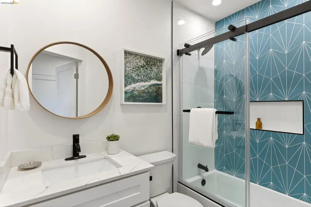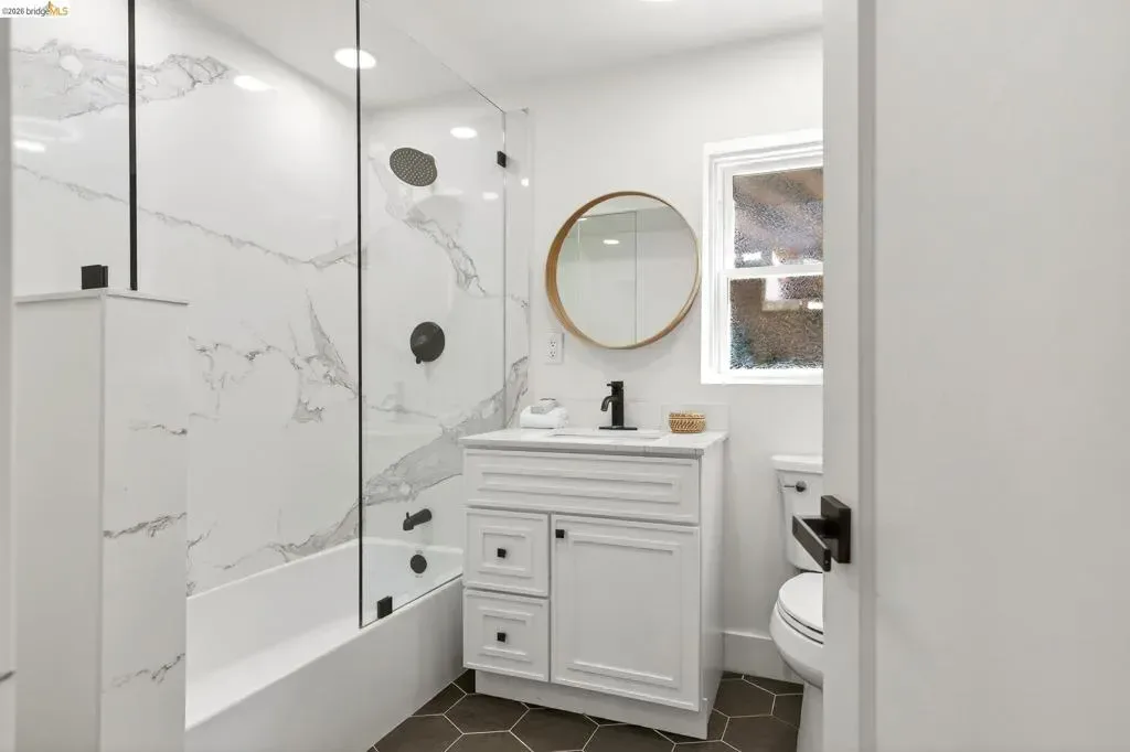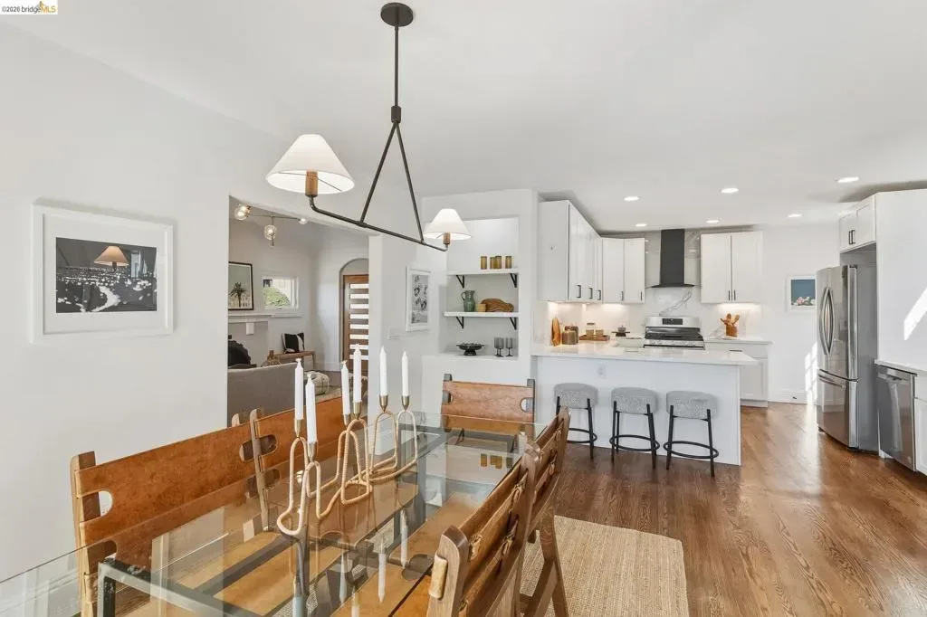 VIEWS! VIEWS! VIEWS! Welcome to your Oakland oasis! This updated home is a light-filled masterpiece, nestled in the sought-after Oak Knolls/ Golf Link neighborhood. Prepare to be swept away by the dramatic, open-concept floor plan and the meticulous designer finishes found throughout. From the moment you step inside, you are greeted by a spacious living room featuring refinished hardwood floors, magnificent arched high ceilings, and a cozy wood-burning fireplace. Large, strategically placed windows frame the breathtaking, unobstructed views of the San Francisco skyline. A view you can soak up even closer from the incredible sunroom, easily accessible from both the dining and living areas. Imagine ending every day with an outstanding sunset spectacle. The kitchen is finished with modern cabinetry, stainless-steel appliances, & striking quartz counters and backsplash. Making it as beautiful as it is functional. The primary suite with luxurious shower, another bedroom and one full bath finish the main level. The lower level offers 2 more bedrooms, a full bath & large storage area. Enjoy dining al fresco in the landscaped backyard. Upgrades in 2022 include, a new roof, HVAC, tankless water heater, new electrical and copper plumbing, and NEST thermostat.