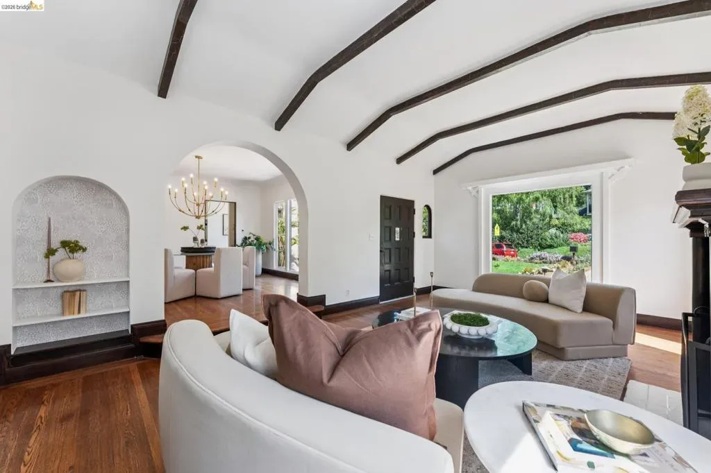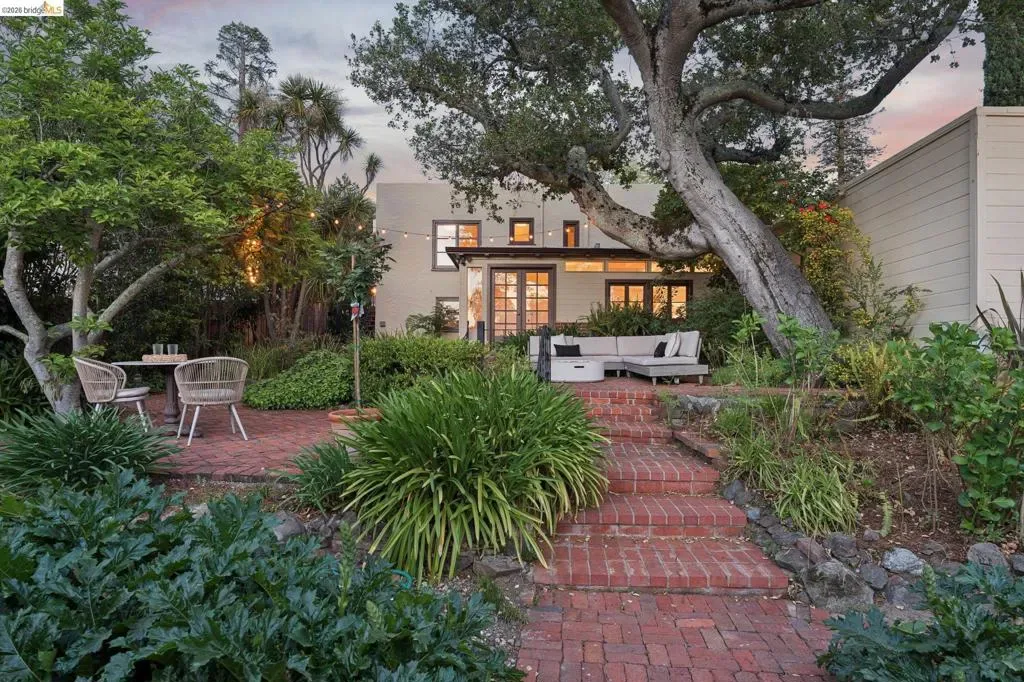 Beloved Mediterranean in coveted Piedmont Pines, just blocks to Montclair Village. This level-in 3BD/3BA home is set within a magical, private garden and offers the best of California living with seamless indoor/outdoor flow—ideal for entertaining, gardening, and play. Dine beneath string lights and a grand oak canopy in the enchanting backyard retreat with 6 fruit trees. The light-filled living room features a coved ceiling with box beams and a cozy fireplace, while the formal dining room overlooks a charming front courtyard. A period-style chef’s kitchen is appointed with oversized windows, custom cabinetry, ample storage, and a delightful breakfast nook. Two bedrooms and two baths are located on the main level. The lower level offers a separate 1BD/1BA suite, both opening to lush, mature gardens—perfect for guests, extended family, or flexible living. Gas line outside for grill. A detached garage, newer paver driveway, and motorized security gate provide convenience and ample parking. Close to top-rated schools, transportation, trails, dining, and shopping.