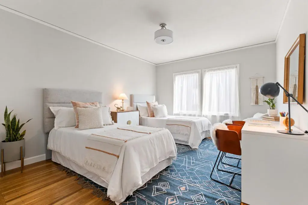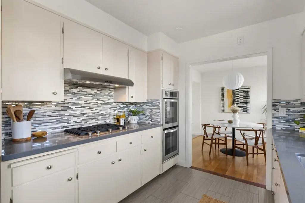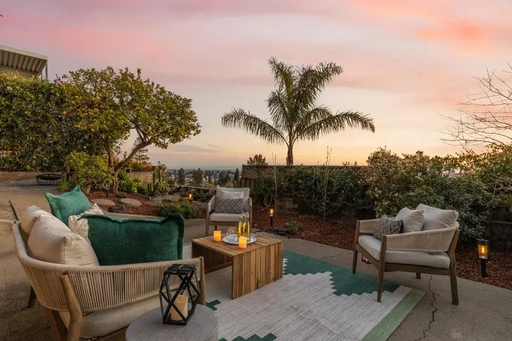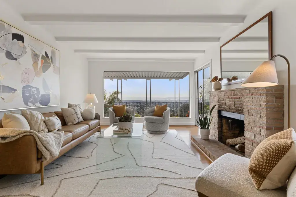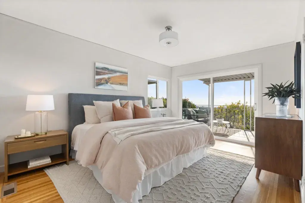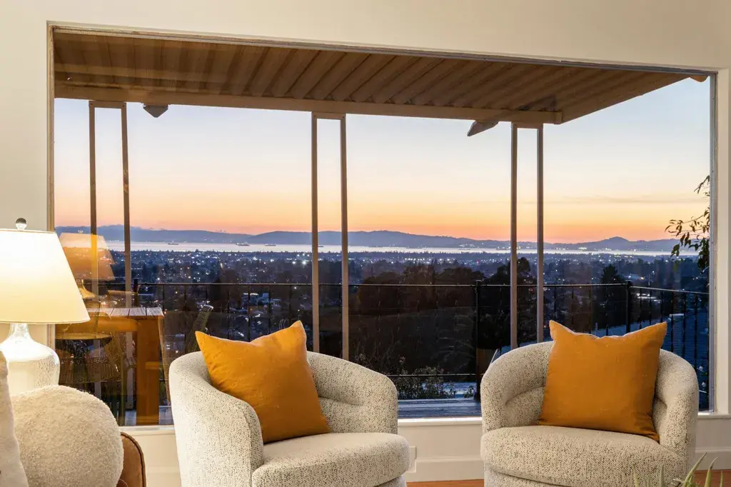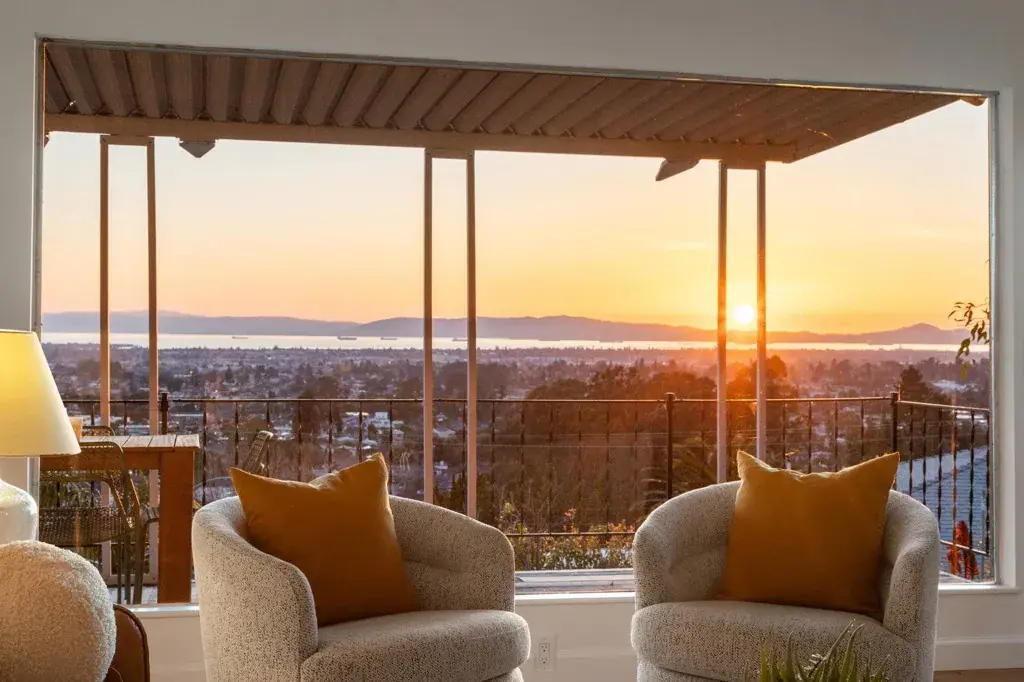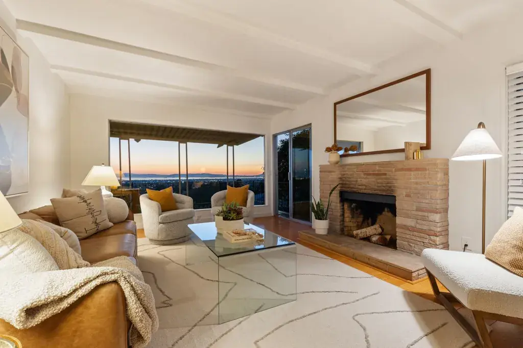 Welcome to 3363 Kiwanis, where unobstructed sweeping bay, city, and multiple bridge views provide a breathtaking backdrop for this mostly single-level home. Architectural character and original details blend beautifully with modern updates and inviting indoor-outdoor living. The expansive west-facing living room is a standout, featuring a stone fireplace, exposed beams, random-plank hardwood floors, and a large picture window framing unparalleled views. The space flows seamlessly to a generous deck—perfect for morning coffee or entertaining. Stylishly updated, the eat-in kitchen offers a gas cooktop, a double oven, ample storage and workspace. The light-filled dining room with corner windows overlooks the front garden. There are two well-sized bedrooms, one with Bay views and direct deck access. A modernized bath is conveniently nearby. Wander down to the lower level and find a versatile bonus space with garden access, plus laundry and abundant storage. Oversized attic with drop-down ladder and so much potential. Outdoors, enjoy a lush backyard for lounging, entertaining, or gardening, along with a welcoming front garden and off-street parking. Lots of upgrades! Conveniently located near shops, stellar dining options, Redwood Regional Park, freeway and transit access.