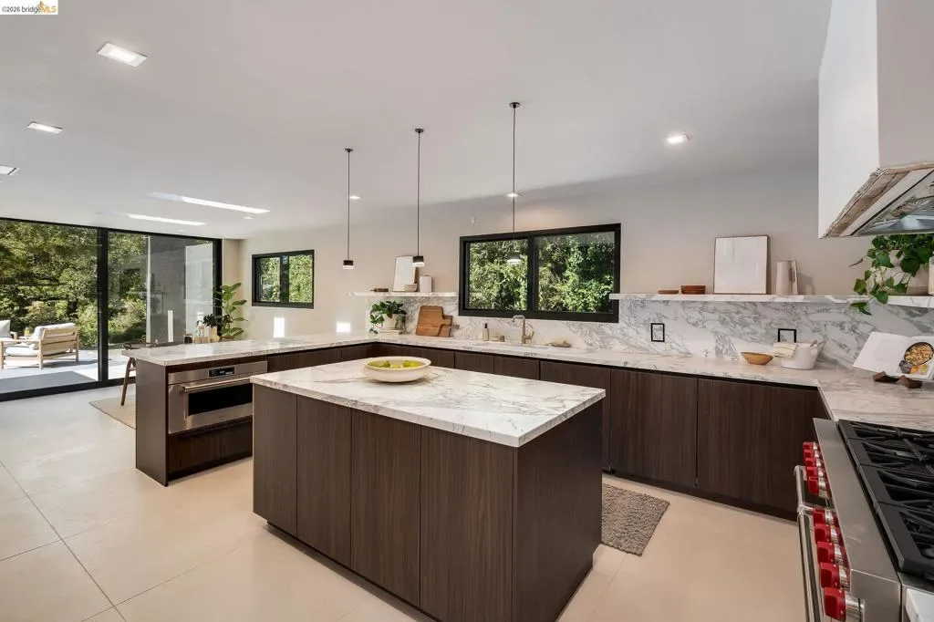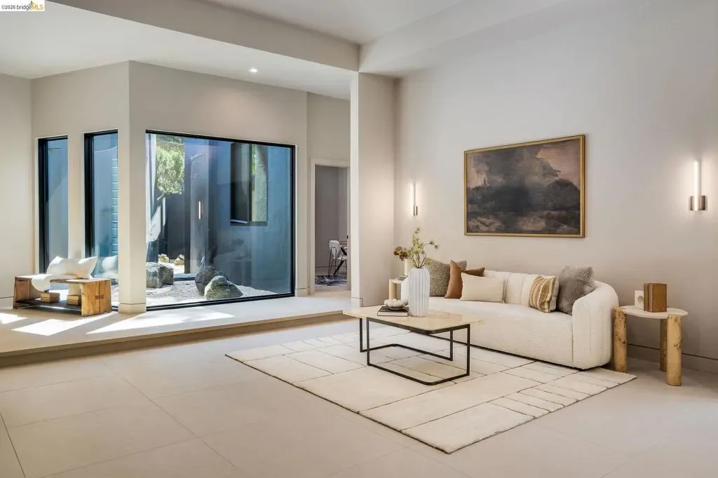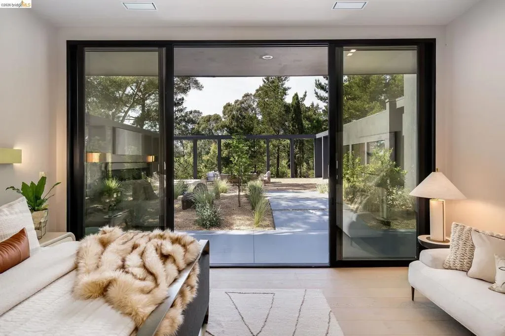 A truly rare offering, 5645 Bacon Road is a one level-brand new modern estate of exceptional scale, glamour, and architectural presence. This one of a kind single level residence features 6 luxurious bedrooms, each with its own ensuite full bath, plus 2 half baths. Soaring 12 foot ceilings, expansive light filled spaces, and a dramatic 10 by 20 glass sliding door create a seamless indoor outdoor lifestyle. Designed for both grand entertaining and elevated daily living, the home offers an oversized living room, private office, gym, cigar lounge, and a stunning chef’s kitchen with Wolf and Sub Zero appliances, complemented by a secondary prep kitchen. Outdoors, enjoy an oversized pool (to be completed by COE), a pool house with full kitchen, a second pool house with full bath, level grounds, multi car garage, and a motorized gated entrance framed by olive trees. Sleek, grand, and unforgettable, this exclusive new construction is a once in a lifetime opportunity and one of the most spectacular modern homes to come to market in Oakland in years.