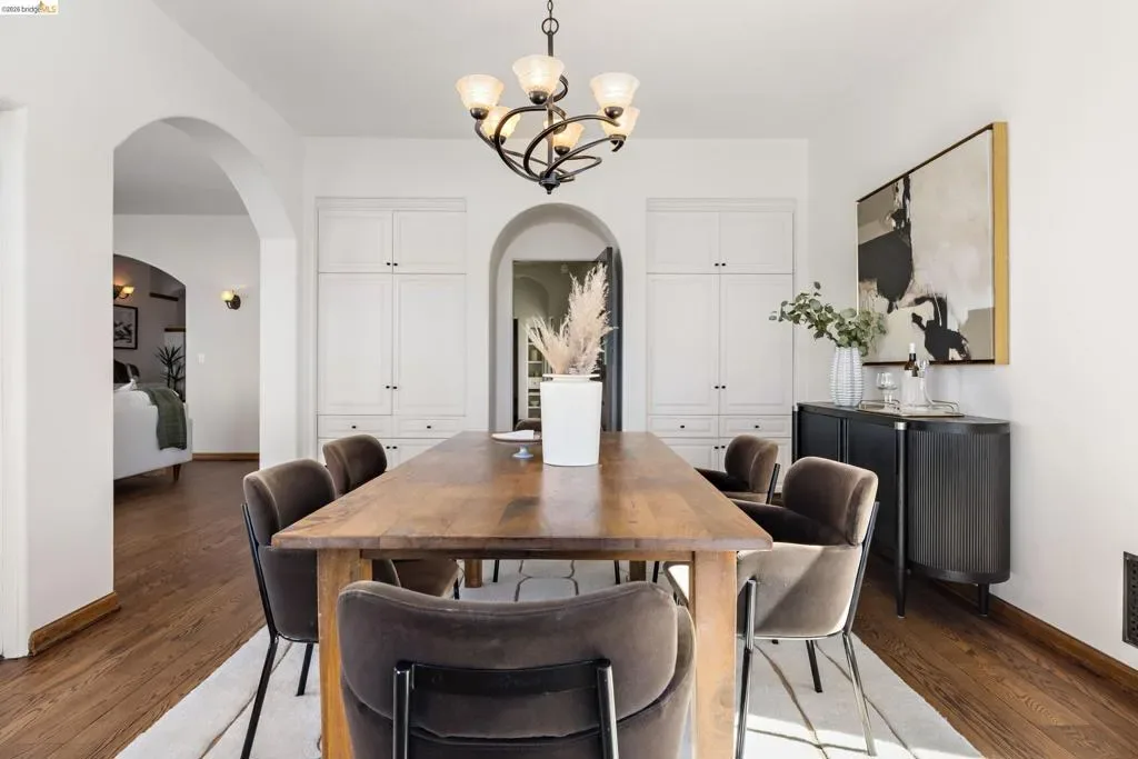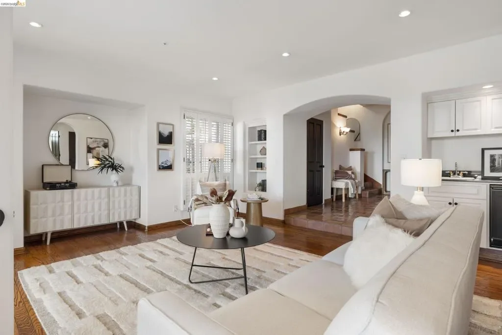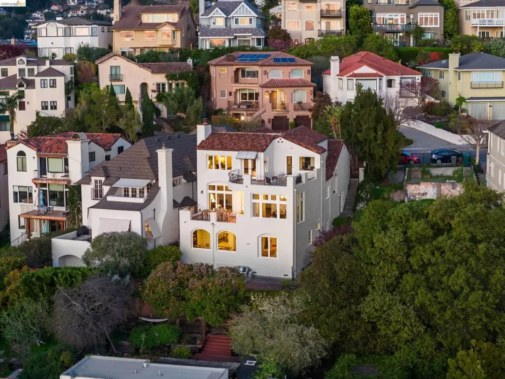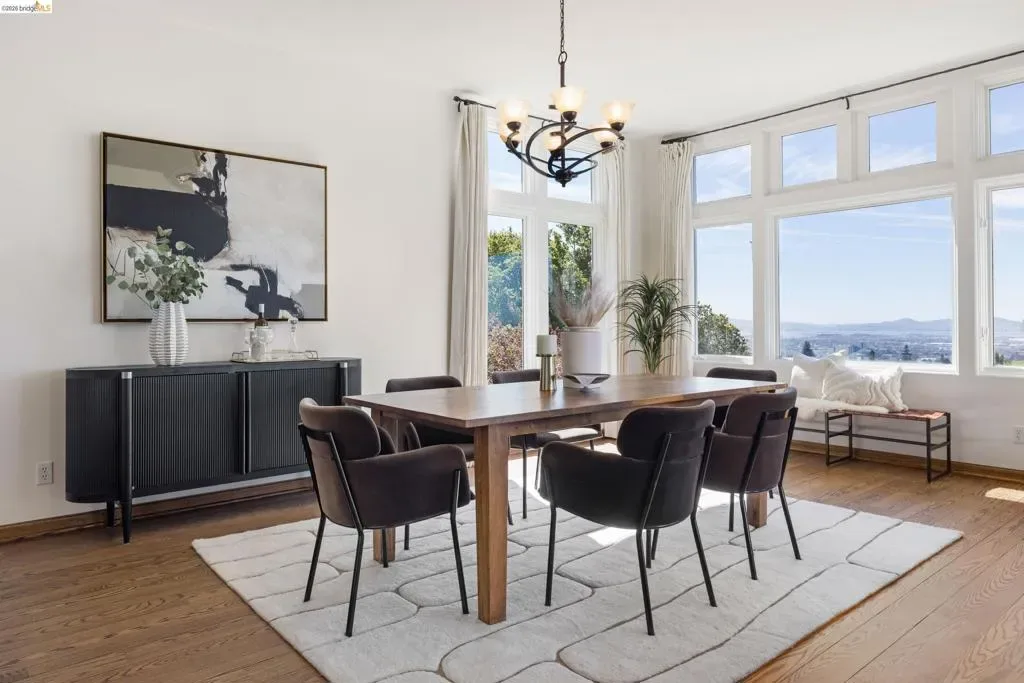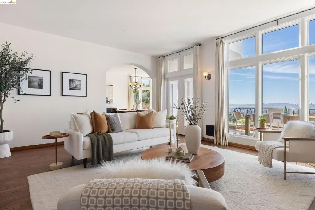 Set in the sought-after Upper Rockridge neighborhood, this residence pairs refined design with sweeping, cinematic views of the Bay framing San Francisco and all three bridges. The main living level welcomes you with an elegant tiled entry, then unfolds with a natural, effortless flow. Panoramic views immediately draw you into the gracious living room with fireplace, seamlessly connected to the dining room. Both spaces open to a generous view deck – an ideal setting for morning light, alfresco evenings, and ever-changing vistas of the Golden Gate and beyond. Upstairs, the primary suite is a spacious retreat, complete with a private deck that captures the same remarkable views. The lower level is thoughtfully designed for flexibility, featuring two spacious bedrooms, a full bath, comfortable family room, and an expansive office well-suited for today’s work-from-home lifestyle. A dedicated laundry room with chute adds convenience and storage, while a wet bar enhances ease and hospitality. Natural light and gracious archways captivate throughout. Don’t miss the gardening shed and workshop off the kitchen. Balancing elegance with livability, this Upper Rockridge Mediterranean home offers a rare combination of scale, versatility, and unforgettable views.