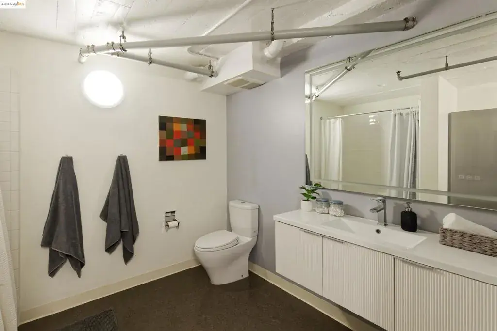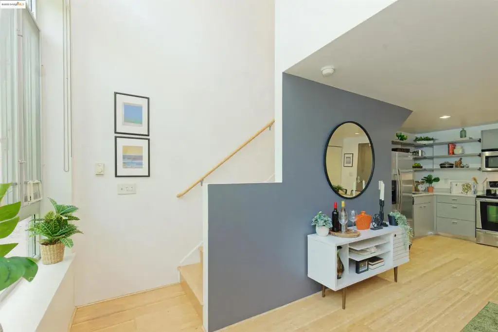 Easy to show! Call Sandi LIVE-WORK-PLAY-ENJOY! A Rarely available unique 1 bedroom, 1 bathroom bright and Sunny Courtyard Loft end unit at Pacific Cannery Lofts the Award Winning Rick Holliday-David Baker and Partners Gated historical community located in West Oakland. Don’t miss this incredible opportunity to enjoy all the advantages of living in this cute end unit loft with lush courtyard views and lots of natural light. First floor open concept living with a modern kitchen that has all stainless appliances, Corian countertops, plenty of counter space for the cook, living room – dining area has great lush landscaping view. Lovely Bamboo flooring throughout. Upstairs Primary bedroom can easily accommodate a king size bed and has a huge closet with great custom built-ins. Fabulous separate flex space perfect for Home Office, Exercise area, Nursery and more! In-unit washer- dryer. Convenient location with easy commute, Low HOA, Pets OK and just a stone’s throw from Emeryville, San Francisco, Downtown Oakland, Bart, freeways, bike paths. One assigned covered parking space with EV charger in gated garage. Secure bike room & dog washing station too. Vacant and easy to show.
