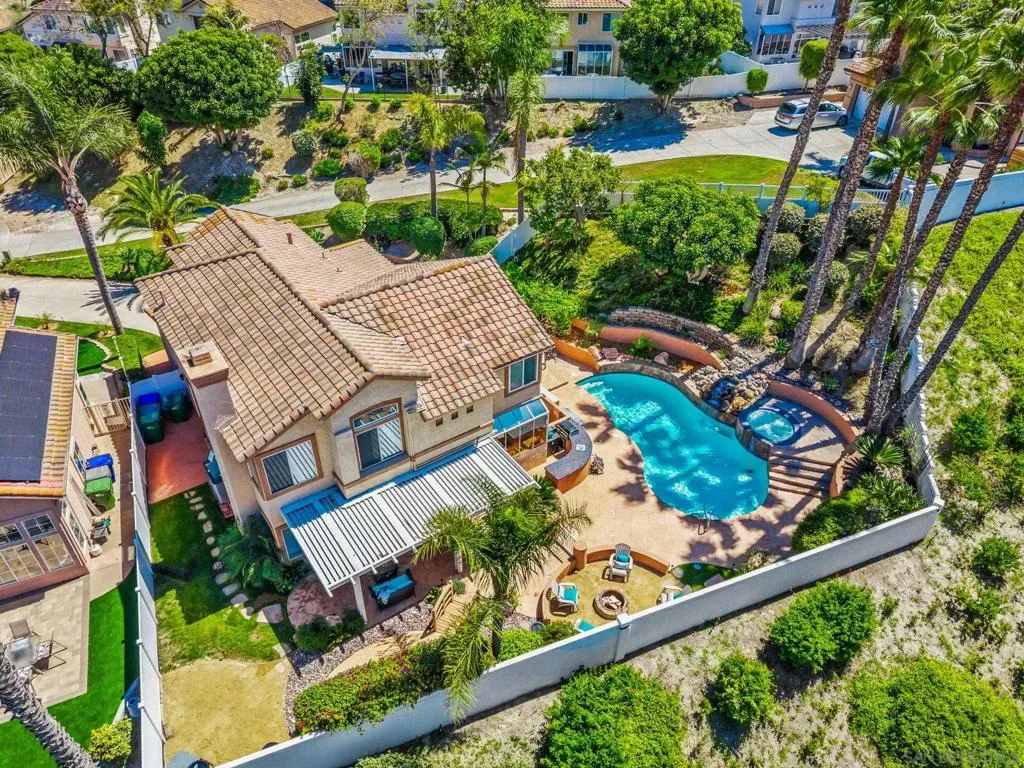Welcome to this exceptional five-bedroom home situated on one of the largest lots in Rancho del Oro, ideally positioned on a private cul-de-sac with an extended driveway offering both privacy and presence. This beautifully maintained property showcases resort-style grounds featuring a heated pool, in-ground spa, and an abundance of mature palm trees, creating a true backyard oasis. Lush landscaping surrounds the home, including vibrant bougainvillea, roses, green front lawn, and five producing grapevines expected to yield 50–100 pounds this year: an uncommon and charming highlight. Inside, soaring vaulted ceilings and expansive windows fill the home with natural light, enhancing the spacious and inviting layout. The versatile floor plan includes a downstairs bedroom and full bathroom, along with two separate living areas ideal for both everyday living and entertaining. The primary suite offers a peaceful retreat with high ceilings, dual closets, and an oversized ensuite bathroom featuring updated tile flooring. Recent upgrades include new carpet, interior and exterior paint, updated roof underlayment, Aluma wood patio cover and vinyl fencing. The backyard is truly an entertainer’s paradise, offering multiple areas to relax, gather, and enjoy the Southern California lifestyle. Ideal Oceanside location, just minutes from local parks, dining, and shopping, with a quick drive to Oceanside Pier, the beach, and neighboring Carlsbad Village. This is a rare opportunity to own a standout property in a highly desirable community with a low HOA-don’t miss it!