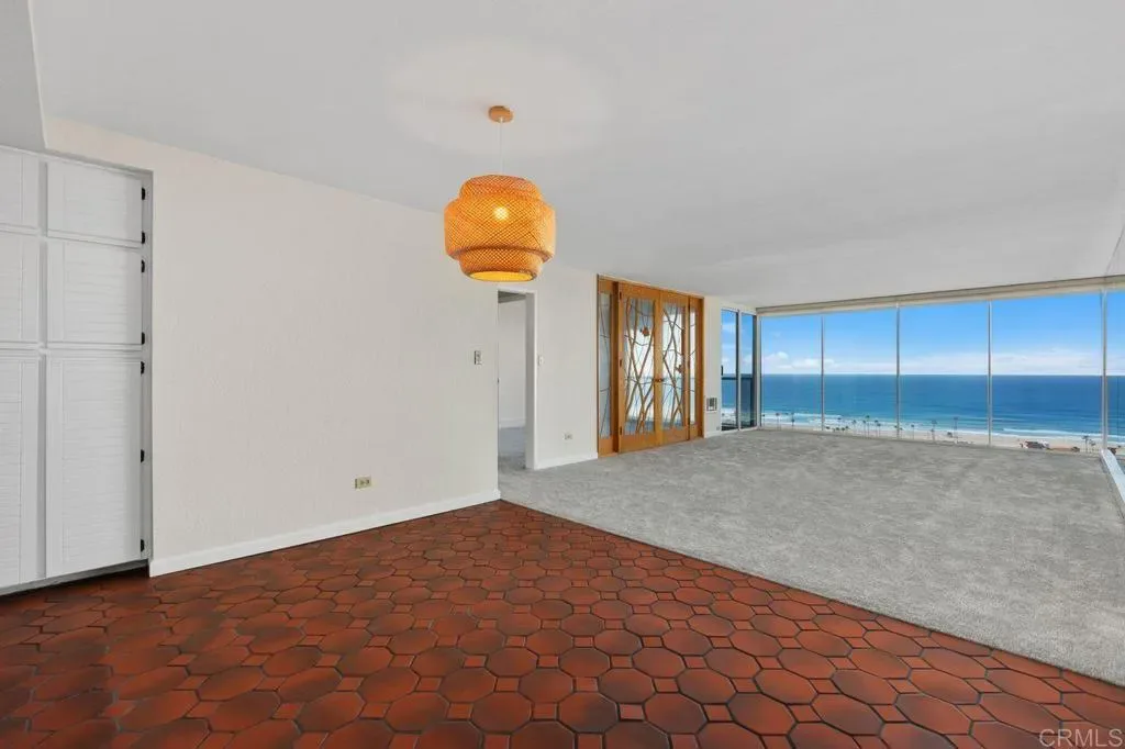 Breathtaking whitewater ocean and harbor views! On a clear day you can see Catalina and San Clemente Islands, and watch the kayakers and sailboats drift in and out of the harbor from your living room. From your private balcony, you can watch the surfers, or grab your board and join them! This unique highrise building is a rare find along the coast. This unit is a true 2 bedroom with artisan glass door panels separating the second bedroom and living area. Freshly carpeted and ready for your decorating touches. Note the many amenities in the building – pool, spa, barbecue area, exercise room, and well-appointed recreation room. Wifi, basic cable, and water included in your HOA dues. Secure building, and gated parking add to your comfort, and there is an additional storage closet for your surfboards, bicycles, beach chairs. Professional interior photos coming soon.