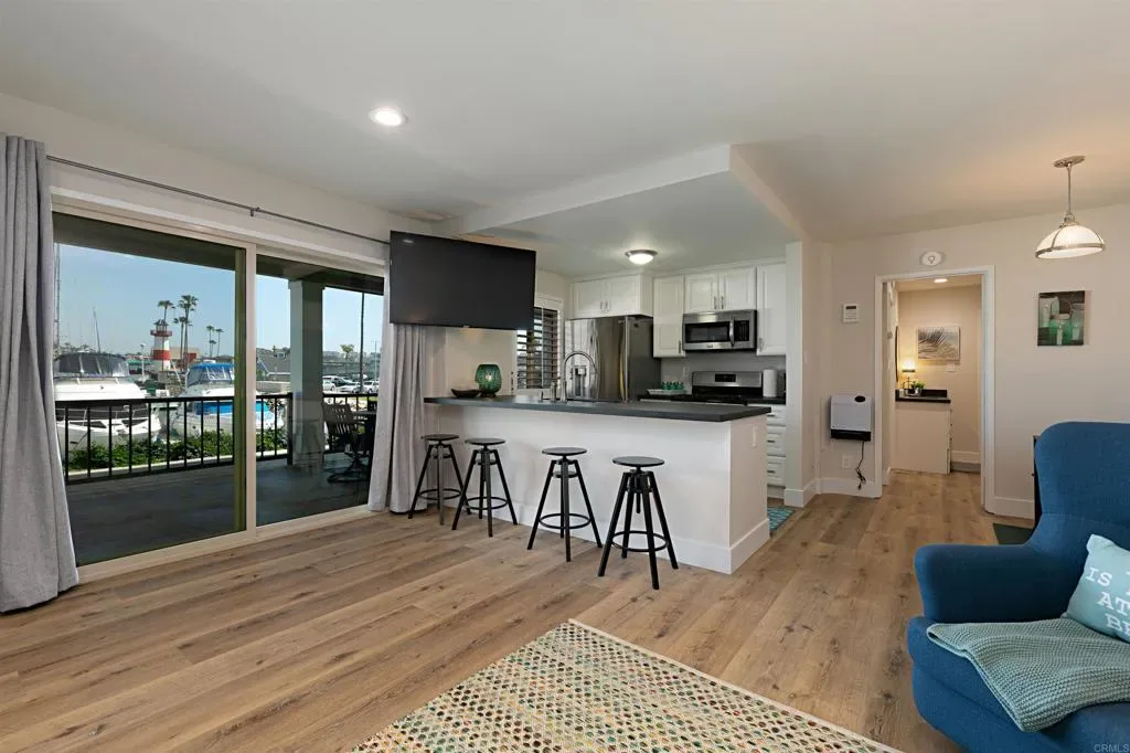 Opportunity to own WATERFRONT! This Complex sits uniquely in the peninsula where the ocean is on one side and the harbor on the other side. Where the beach and water activities are at your fingertips. Just steps away is fishing tours, boat rentals, paddle board & kayak rentals and a number of great restaurants and shops. Just a short walk south is the pier and downtown Oceanside where you’ll find even more variety of restaurants, coffee shops, wine bars, cocktails, shopping and much more! Oceanside has rapidly become a great vacation destination! This unit was recently remodeled and comes fully furnished and move-in ready! Colorful harbor views with the gentle sounds of ocean best describes the vibe once you arrive. Unique to ONLY 6 bottom units in this complex is over 100 SQUARE FEET of PRIVATE PATIO space! SHORT TERM RENTALS OK! This gated community offers a pool, spa, BBQs and recreation center.