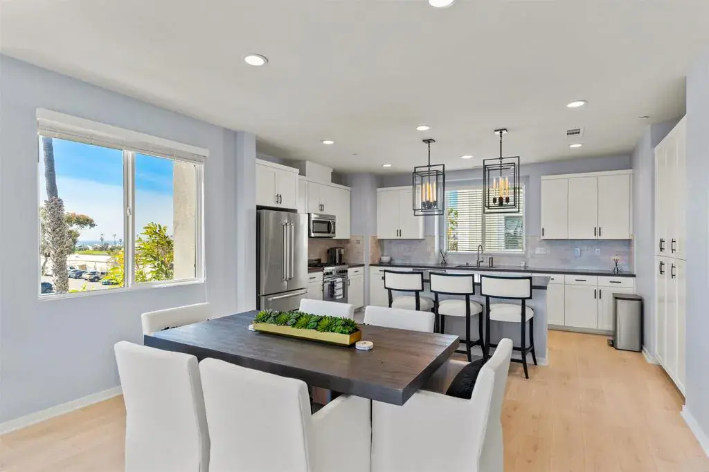 Experience the epitome of coastal luxury with this spectacular 3-bedroom, 3.5-bath townhome located west of I-5 and only a couple blocks to the beach! Situated in a coveted corner location, this property offers sweeping panoramic ocean views from its expansive rooftop deck—no need to look over other decks to take in the stunning coastline! Enjoy breathtaking sunsets as well as the surrounding mountains and city lights. Built in 2019, this home is thoughtfully designed with modern finishes and high-end upgrades. The spacious 1,951 sqft layout features a first-floor bedroom with a private full bathroom, ideal for guests or a home office. The open-concept second floor includes a gourmet kitchen with stainless steel appliances, quartz countertops, a large center island, and a sleek dining and living area that seamlessly flows onto a balcony—perfect for entertaining. The third floor boasts a luxurious primary suite with ocean views, a walk-in closet, and an impeccably upgraded en-suite bath with a large walk-in shower and double vanity. A second en-suite bedroom on the same level offers additional comfort and privacy. The highlight of this townhome is the stunning rooftop deck—complete with custom kitchen with barbecue, fire table, and ample space to host gatherings while soaking in the panoramic ocean views. Additional features include custom epoxy floor in garage, custom closets, custom garage cabinets, air conditioning, smart home controls with intercom iPads on each floor. Option to purchase completely furnished for an additional cost, so you can enjoy your new home right away!