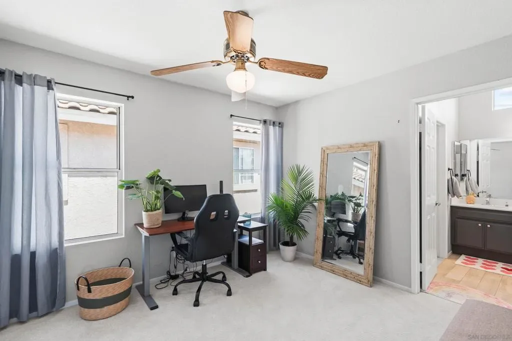 Welcome to Rancho Del Oro living at its best! This beautifully maintained 4-bedroom, 3-bath, corner-lot home offers 2,196 sq ft of bright, open living space with a highly desirable open floor plan and full bedroom and bathroom downstairs; ideal for guests, multi-generational living, or a home office. Step into soaring ceilings and a light-filled layout connecting the living room, dining area, and kitchen—perfect for entertaining. The inviting family room features a cozy fireplace, while the kitchen offers an open space, ample cabinetry, and great flow. Upstairs, the spacious primary suite includes a walk-in closet, abundant natural light, and a private en-suite bathroom. Jack n Jill bathroom for additional bedrooms. Enjoy true indoor-outdoor living with a private backyard and patio, perfect for BBQs, relaxing, and outdoor entertaining. Additional highlights include a brand-new whole house fan, attached 2-car garage, and prime location next to the community playground. Conveniently located within walking distance to Empresa Elementary, near parks, top-rated schools, shopping, dining, and beaches, with easy freeway access for commuters. Located in one of Oceanside’s most desirable neighborhoods, this move-in ready home checks every box: open concept, fireplace, walk-in closet, backyard, patio, garage, natural light, and family-friendly location. Perfect for first-time buyers, VA buyers, and those looking for space, flexibility, and lifestyle. Don’t miss this opportunity!