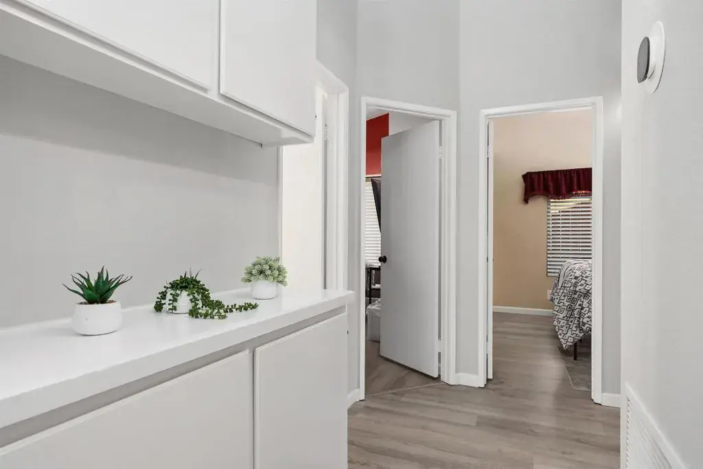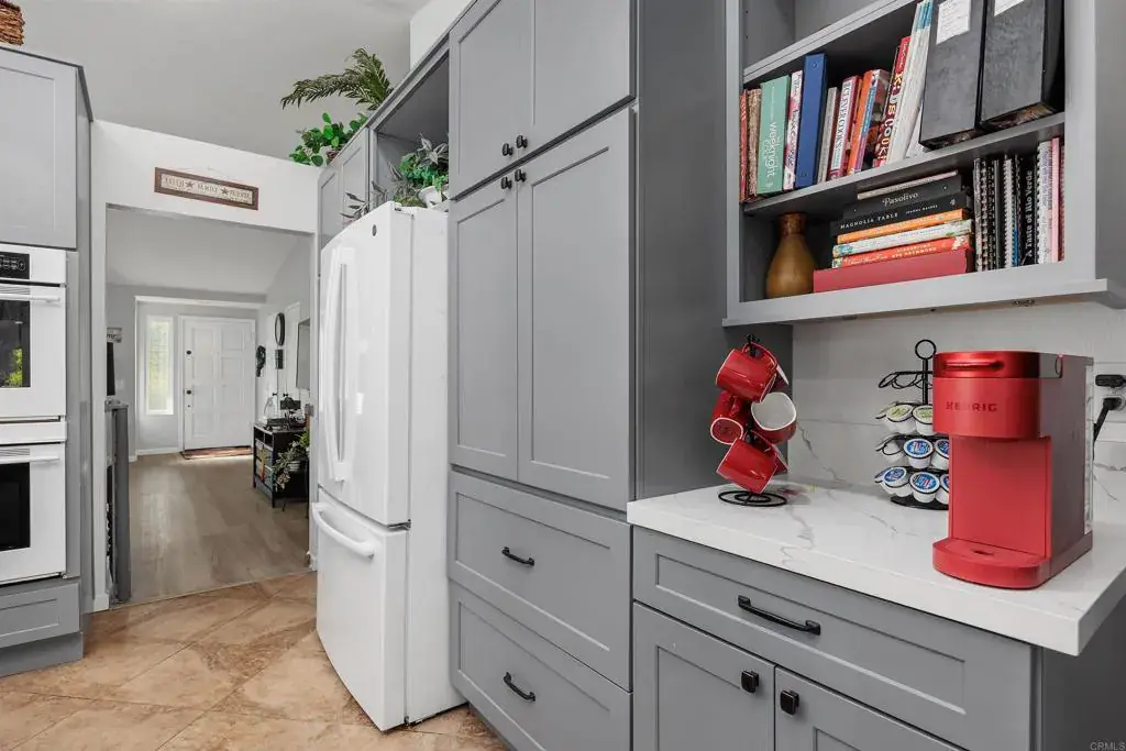 In the heart of Rancho Del Oro, this well-maintained and thoughtfully renovated 3 bedroom ONE-STORY residence combines both comfort and efficiency, creating a truly move-in-ready experience! This home has been meticulously upgraded throughout with designer choices and finishes, including kitchen & bath remodels. (PLEASE SEE LIST OF UPGRADES IN DOCUMENT TAB). The living room and dining areas are generously sized, featuring 18-foot vaulted ceilings that create an open and airy atmosphere. Warm paint colors enhance the inviting feel of these spaces, while large windows flood the rooms with natural light, making the home bright and welcoming. The luxury vinyl plank flooring, complemented by the contemporary palette, adds to the overall sense of comfort and elegance throughout these main living areas. The family room (being used as a dining area) also boasts a vaulted ceiling and is anchored by a welcoming fireplace adorned with tile, providing both style and warmth. This space seamlessly connects to the kitchen making it ideal for relaxation and gatherings. The spacious, remodeled kitchen is both stylish and highly functional, offering plenty of space for preparing meals and hosting gatherings. Thoughtfully designed, it features an abundance of custom cabinetry with pull outs and soft close features, a double oven, recessed lighting, under cabinet lighting, a large quartz island with pendant lighting and generous counter space to accommodate all your culinary needs and entertaining aspirations. The kitchen is designed for seamless California indoor/outdoor living, featuring sliding doors that open directly to the expansive pool sized backyard. This private outdoor space is notably larger than most in the area, offering plenty of room for entertainment, relaxation, or the potential addition of a pool or expanding the home, if desired. The primary retreat offers exceptional privacy, thoughtfully positioned away from the secondary bedrooms to ensure a peaceful and quiet environment. A large sliding glass door provides direct access to the tranquil and inviting backyard, seamlessly blending indoor comfort with outdoor serenity. The ensuite bathroom showcases contemporary finishes, featuring a separate shower area, dual vanity sinks creating a luxurious and functional space for relaxation and daily routines. It also features a walk-in closet with built-ins. The secondary bedrooms are generously sized, providing space for comfort and functionality. All the bedrooms have ceiling fans. Notably, one of the secondary bedrooms features a walk-in closet with built-ins, offering convenient and enhanced storage options. The two-car garage offers a generous amount of storage space, providing plenty of room to keep belongings organized, store seasonal items, or accommodate recreational equipment. With its seamless blend of style and function, this Rancho Del Oro residence offers a rare opportunity to enjoy coastal North County living at its best—just minutes from freeway access, beaches, schools, dining, and top local amenities. Thank you for showing! Buyer to verify square footage, room dimensions, lot size, HOA fees, school district and inclusions, and condition of property prior to the close of escrow.