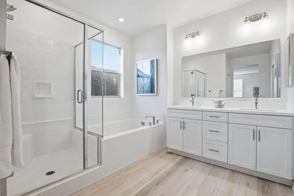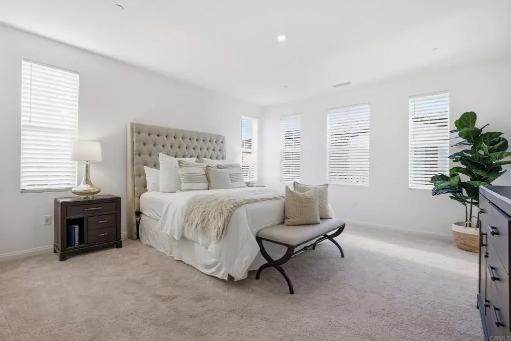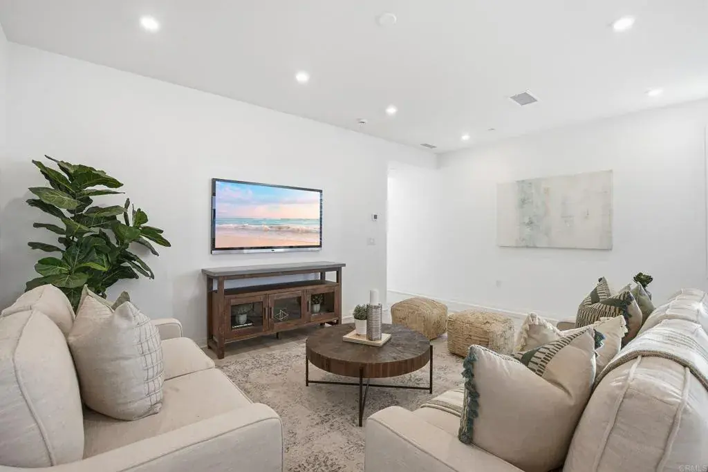 Welcome home to 1700 Laurelwood Way in the highly desirable Strand community of Melrose Heights in Oceanside! This stunning end unit 4-bedroom, 2.5-bathroom townhome offers the perfect blend of modern comfort and coastal charm. Built in 2023, this 2,143 sq. ft. home features paid solar, central AC with dual zone thermostats, soaring 9-ft ceilings, and upgrades throughout. The open-concept great room is bathed in natural light, leading to a gourmet kitchen with ample cabinet and counter space for you to make your favorite meal. The primary suite is a true retreat, featuring a spa-like soaking tub, walk-in shower, and a custom walk-in closet with elegant features. Enjoy effortless indoor-outdoor living with a low-maintenance wrap around backyard with artificial turf plus a grassy play space right outside your front door. The attached two-car garage and additional one-car driveway provide ample parking and storage as well as prewired for your EV charger. This smart home is equipped with MyQ Garage, a Ring Doorbell, a Schlage Smart Lock, dual Honeywell Home Smart HVAC system, dual eero Wi-Fi extenders for the ultimate in technology and convenience. Melrose Heights is a resort style community featuring a pool, hot tub, fire pit, BBQ, greenbelts and multiple playgrounds allowing you to fully enjoy the coastal lifestyle. Ideally situated close to dining, shopping, schools, freeways and beaches, 1700 Laurelwood Way is a move-in-ready home and an incredible opportunity!