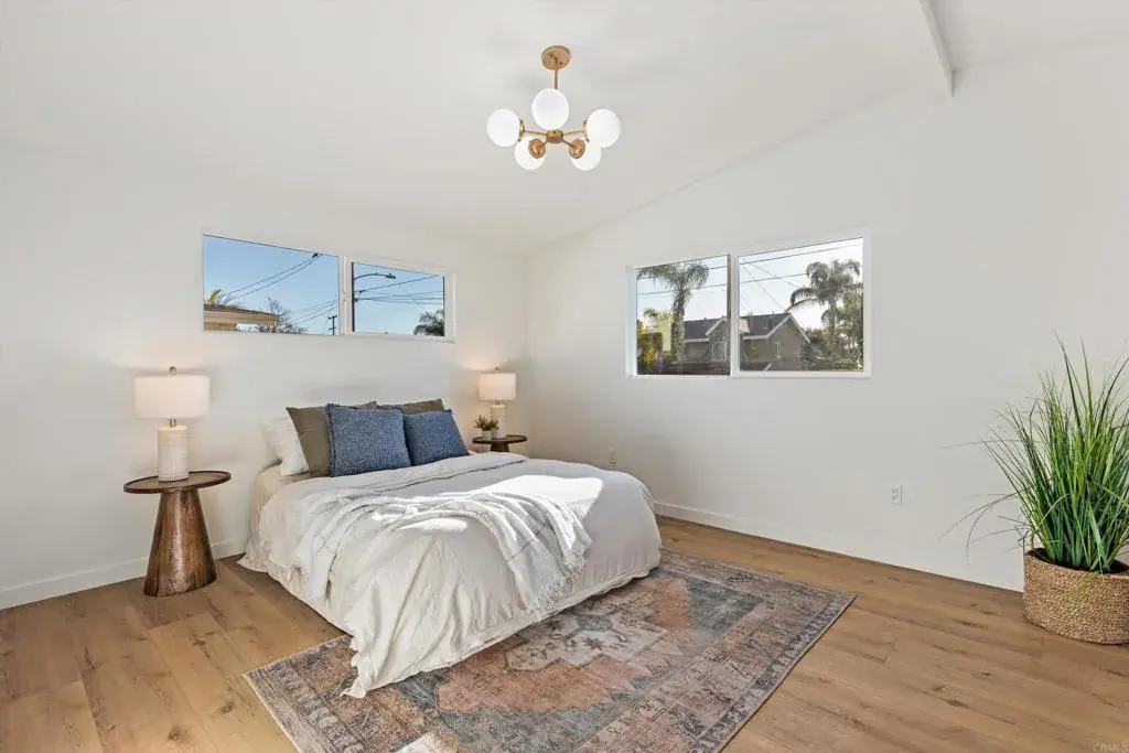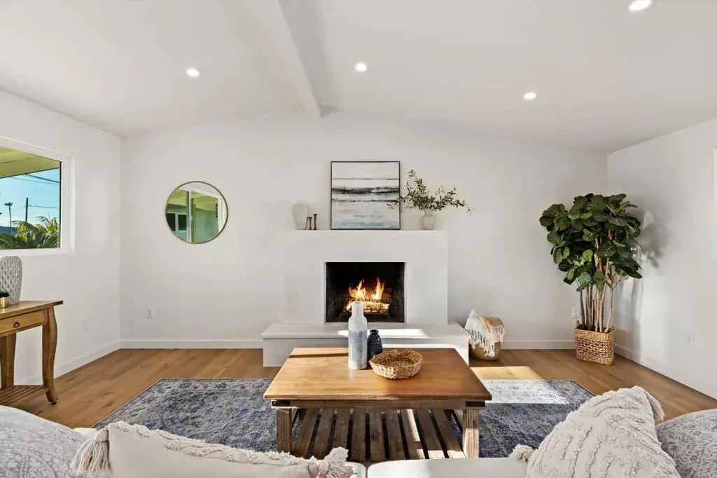 This completely reimagined mid-century home represents the pinnacle of quality construction and architectural design. Taken DOWN TO THE STUDS, every system has been meticulously rebuilt to 2026 standards: new plumbing, electrical, roof, high-efficiency HVAC, and tankless Noritz water heater ensure decades of worry-free living. The transformation showcases exceptional craftsmanship throughout. Volume ceilings with exposed beams flood the open living space with natural light, while luxury vinyl wood flooring and smooth-finish drywall create a refined canvas. The designer kitchen features luxurious GE Café appliances, custom cabinetry, and stunning quartz countertops—a culinary enthusiast’s dream. Spa-inspired bathrooms boast decorative tile, custom vanities, and generous walk-in showers with premium fixtures. Outdoor living shines equally bright. A welcoming DG pathway leads to a covered front porch with iconic mid-century railings and Dutch door capturing coastal breezes. The private backyard offers expansive lawn space, while the large Trex deck creates seamless indoor-outdoor flow—perfect for alfresco dining and entertaining. Additional highlights include custom built-ins, dual-pane windows, modern lighting throughout, and a detached garage offering ADU, office, or gym potential. Enjoy the best of South Oceanside, where laid-back beach culture meets sophisticated dining and entertainment. This Fire Mountain gem places you minutes from pristine beaches, award-winning craft breweries, and the thriving South O district—known for artisan coffee shops, farm-to-table restaurants, and vibrant nightlife that rivals North County’s finest. This is Fire Mountain living elevated—impeccable construction quality, timeless design, and an unbeatable South Oceanside lifestyle. With freeway access moments away, you’re perfectly positioned for the ultimate coastal experience. Don’t miss this absolute gem!