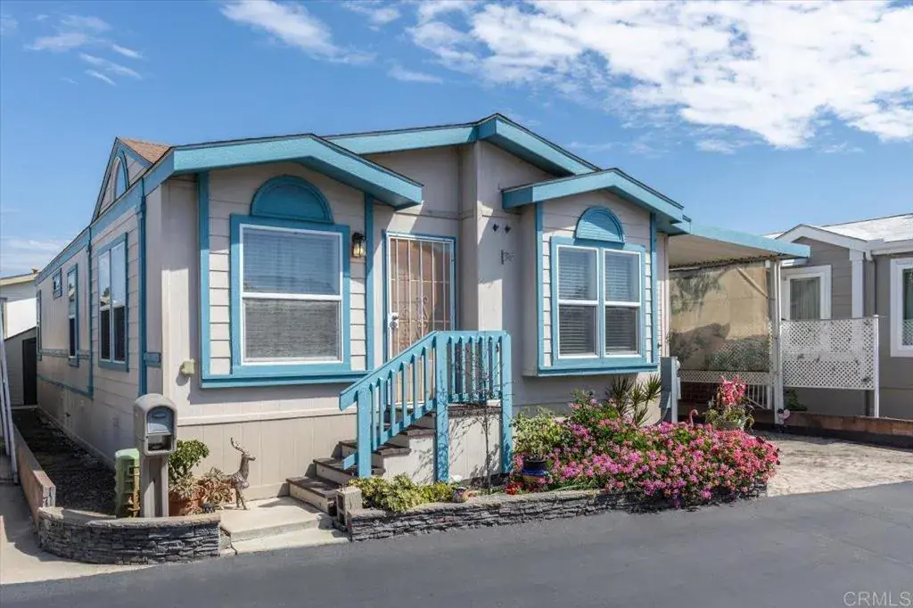 Own your own land & Home! Gated, “resident owned community” located only about 5 miles from the coast! Ride your bike along the nearby San Luis Rey River trail to the Oceanside Harbor & Beach! Active & Social 55+ community w/ low HOA fees of only $175 / month includes Water, Trash, & Sewer! No space rent! This 2 bedroom / 2 bathroom “post HUD” home does have a recorded 433A. Open floor plan with drywall and vaulted ceilings and lots of natural light produced by multiple solar tubes and high window dormer. Separate Laundry room with extra storage cabinets. The Primary Bedroom has a retreat, 2 closets, an ensuite Bathroom with a step in shower and double sinks, and it’s private entrance with a sitting deck. All appliances are included, plus the Washer and Dryer, and the dishwasher and microwave are newer. This is an active community with lots of activities for seniors to meet and socialize with new friends. Community features include clubhouse with library, fitness room, shuffle ball court, banquet/card room, basketball hoop, hobby room, additional laundry facility, billiards room, kitchen, car wash, RV/boat parking (subject to availability) and more! Conveniently located close to shopping choices (Ralphs, Stater Bros., Albertsons & Vons), restaurants, grocery, medical offices (Scripps Coast Medical Office, Kaiser, & VA clinic), walking distance to historic San Luis Rey Mission, nearby bike trails and approximately 5 miles from the beautiful Oceanside coast and harbor! Financing options are available, just ask Listing Agent if you need contacts. Come check it out and see if this home is just what you’ve been searching for! This is a NO pet park, only service animals are allowed. One resident must be age 55+, the second can be age 50+.