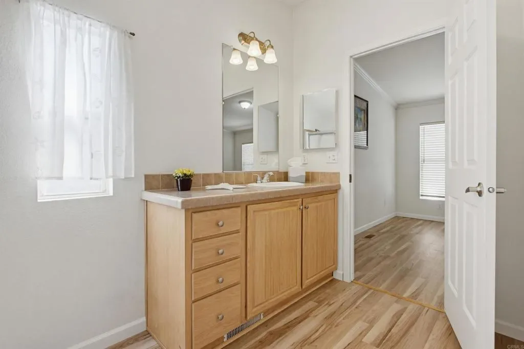 OPEN HOUSE TODAY, SATURDAY 4/4: NOON to 3 PM! Quiet Oasis: Fully Modernized & Move-In Ready. Tucked away at the peaceful end of the highly sought-after Rancho San Luis Rey 55+ community, this beautifully renovated home offers a rare combination of modern upgrades, secluded privacy, and exceptional value. With fresh surfaces and newly installed systems from wall to wall, this is coastal living at its most effortless. Interior Highlights: Total Flooring Refresh: Step onto brand-new flooring throughout the entire home—including the kitchen, living areas, utility room, and both bathrooms. Modern Kitchen Appliances: Ready for a fresh start with a brand-new range oven and matching over-the-range microwave. Designer Kitchen Upgrades: The kitchen features a premium new composite sink—prized for its durability and modern look—paired with a sleek high-arc pull-down faucet for ultimate convenience. Brand-New Window Treatments: Every window is outfitted with brand-new faux-wood cordless blinds for a cohesive, sophisticated look and excellent light control. Entryway Refresh: Includes new decorative glass in the front door which creates a beautiful first impression and invites in natural light. Outdoor & Location Benefits: Expansive Sunny Porch: A large, light-filled front porch serves as the perfect spot for morning coffee or enjoying the cool Oceanside breezes. End-Lot Privacy: Located at the quiet end of the park, offering a much more private atmosphere with minimal through-traffic. Storage Included: Includes a functional storage shed, ideal for tools, hobbies, or seasonal items. Community & Financial Advantages: Rent Control Value: Benefit from Oceanside’s Rent Control, keeping your monthly space rent predictable. Current Space Rent: $562.82. Resort-Style Amenities: Access two clubhouses, two swimming pools, a jacuzzi, tennis and pickleball courts, a billiard room, and a community car wash. Prime Location: Walking distance to grocery stores, banks, the library, and restaurants—and just 5 miles from the Oceanside Harbor and beaches.