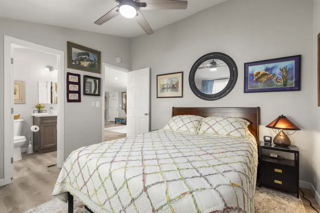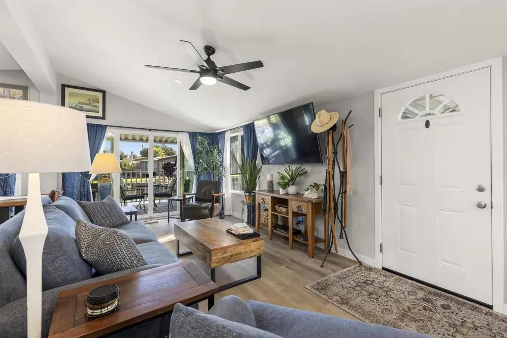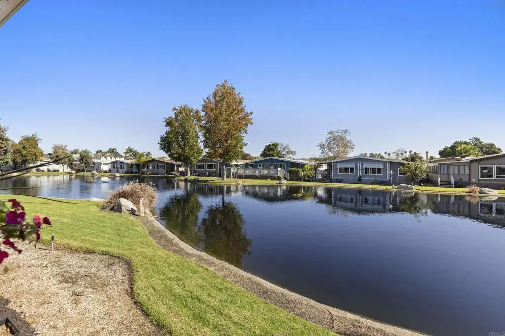 Upscale home on a fabulous lake view lot! You can exit the great room area thru 12 foot sliding door to a huge deck that gives you view of the lake and watch the sun come up as well as the multiple ducks, turtles. This senior park (55+) has 8 lakes, acres of green belts filled with emerald green lawn, trees and flowers. This is a very unique location about 4 miles from sandy beaches, commuter trains, Oceanside pier. This property looks and feels like a stick built home that costs thousands of dollars more yet there is RENT CONTROL that keeps your monthly overhead very comfortable. The remodel is extensive and includes most of the home including a tankless water heater outside (see complete list of upgrades when you visit)! Park tennis/racketball court, year round heated pool, indoor spa, huge very classy club house with library, pool tables, card rooms where there are banquets and a stage for live music and a host of other very fun activities! You are close to grocery stores, medical services, Walmart. Lowes, Home Depot, excellent restaurants with a huge variety food! There is also a huge over size shed (12x10x10 for lots of storage. Come take a look at this unit that will make you feel like you are living in a secluded oasis!