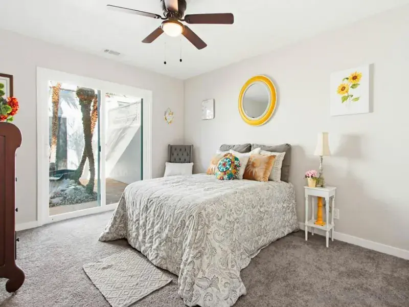 Every day feels like a vacation the moment you step inside this home and into your own private retreat. Quietly tucked within the community, it offers a rare blend of privacy, natural light, and resort-style living rarely found. Completely remodeled and thoughtfully reimagined, the residence lives more like a single-family home than a condo, with *no shared walls* and an exceptional sense of peace and seclusion. Expansive windows fill the home with natural light, creating an airy, calming atmosphere that feels both spacious and grounded. Inside, every detail has been elevated with intention. A reimagined open-concept layout flows seamlessly through a beautiful modern kitchen and into inviting living spaces ideal for both quiet mornings and effortless entertaining. Designer finishes shine throughout, including stunning remodeled bathrooms with elegant Carrera countertops, shiplap accent walls, and durable waterproof luxury vinyl plank flooring throughout that balances style with everyday comfort. What truly sets this home apart is its extraordinary indoor-outdoor living. All 3 bedrooms feature sliding doors that open directly to outdoor spaces, blurring the line between inside and out. Enjoy two distinct patios: a lush, tropical koi pond surrounded by palm trees that creates a soothing, zen-like escape, and a second, intimate enclosed patio that lives like a private atrium. Surrounded by manicured lawns and landscaping, the home feels peaceful, private, and beautifully tucked away. Owned solar helps keep energy costs low, while exterior maintenance is included for effortl