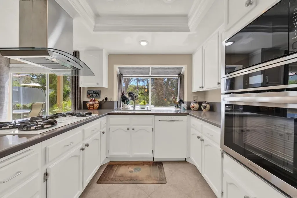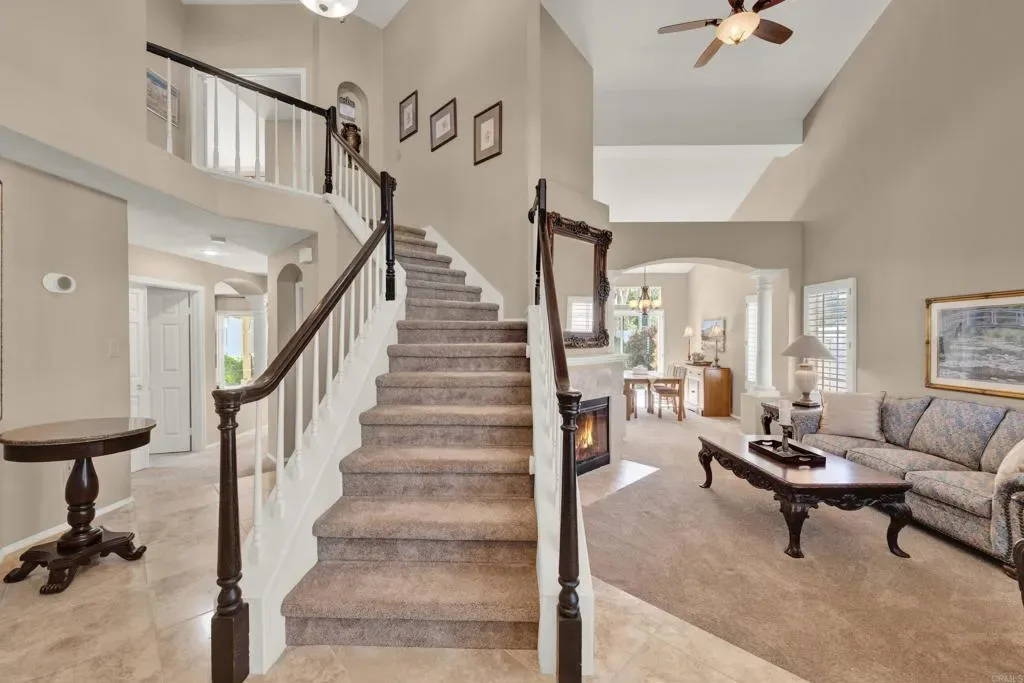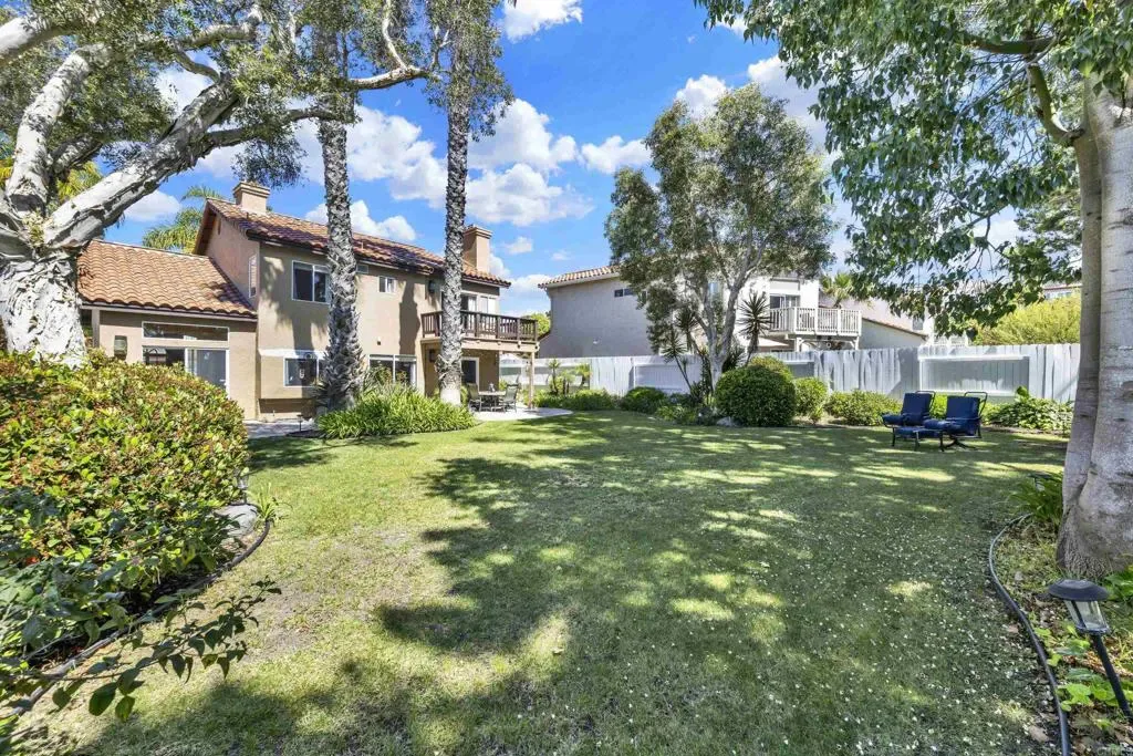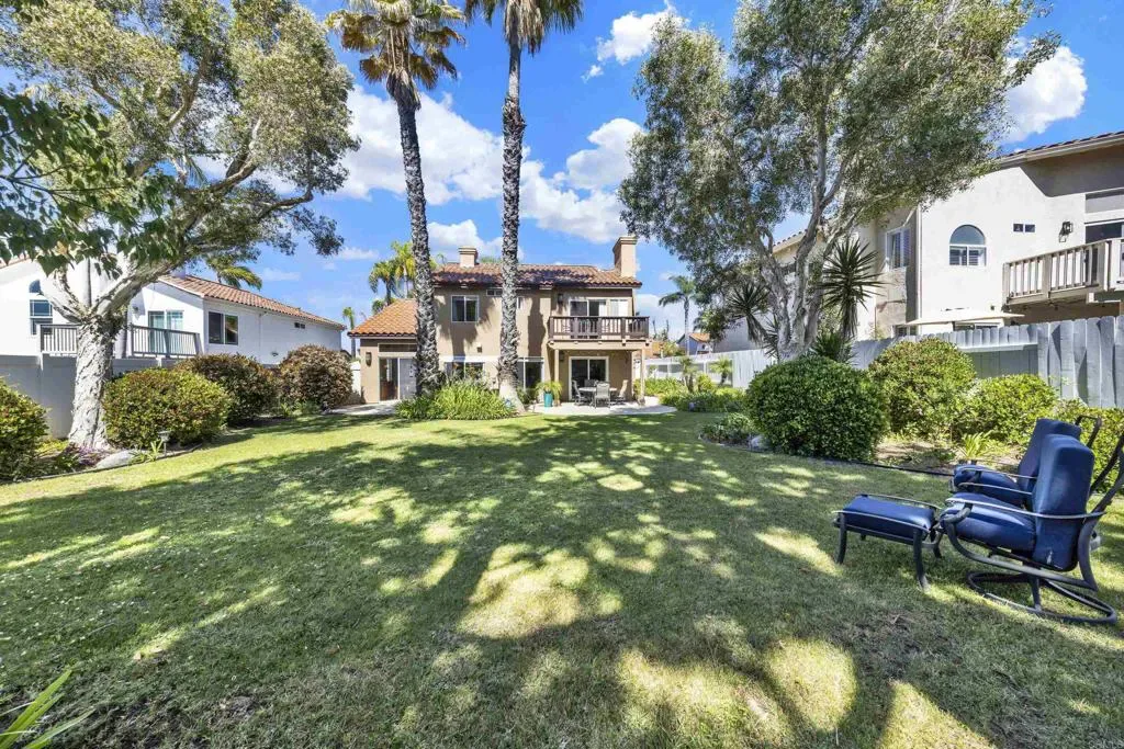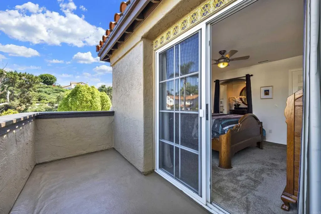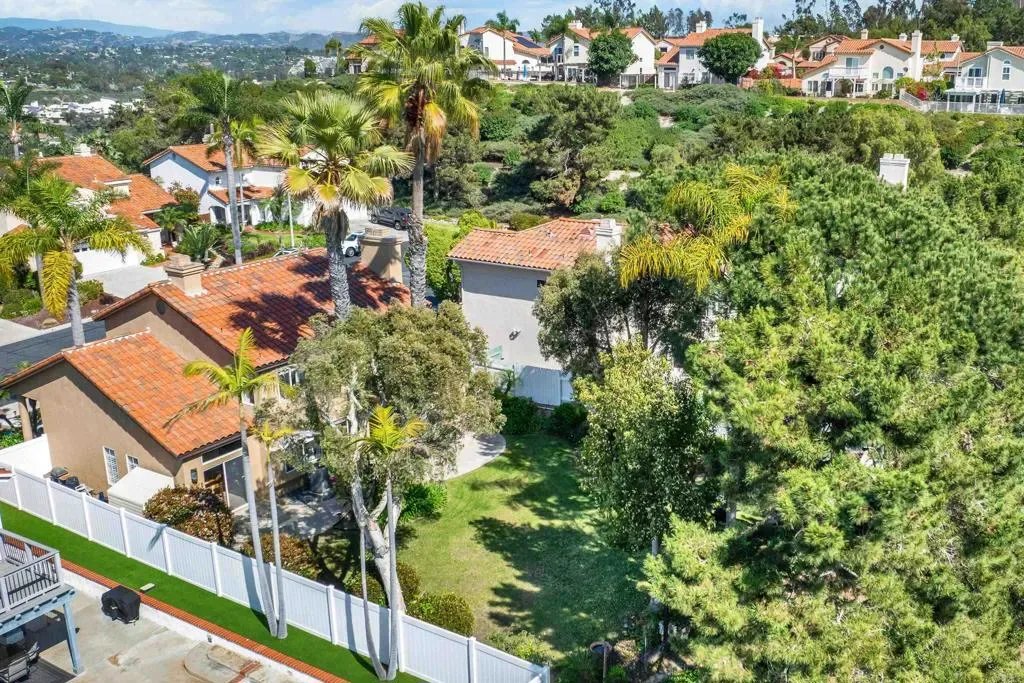 Located on a quiet cul-de-sac in the highly sought-after Ocean Terrace neighborhood, this exceptional and well maintained home is the perfect opportunity for a first-time buyer or those seeking flexible living arrangements! Thoughtfully designed, the layout is ideal for potential multi-generational living, featuring not one, but two spacious primary suites with private balconies on the second floor, along with a third bedroom and full bathroom on the main level! The home offers both formal living and dining rooms, as well as a separate family room and additional dining area, providing ample space for everyday living and entertaining. Three fireplaces…located in the main primary suite, living room, and family room add warmth and charm throughout the home. The beautifully refreshed kitchen showcases Silestone countertops, stainless steel appliances, and with it’s picturesque backyard views, cooking will be a joy everyday! The main primary suite is a true sanctuary, complete with a large en-suite bathroom featuring dual vanities, a separate walk-in shower, a jetted tub, and a spacious walk-in closet. Enjoy your morning coffee or evening sunsets from it’s private balcony with peek-a-boo ocean views, along with scenic vistas of the surrounding mountains and foothills. The second upstairs suite also includes it’s own full bathroom and a generous private balcony. The giant park-like backyard backs to a serene greenbelt area and has plenty of room for a swimming pool, cabana or whatever your heart desires! Additional highlights include a complete roof re-papering completed in December 2024, offering added peace of mind for the new owner! Ideally located just minutes from beautiful sandy beaches, with Calavera Preserve and it’s scenic hiking trails only a few blocks away, as well as convenient access to world-class dining, shopping, and golf. This stunning home is truly move-in ready…nothing to do but unpack and start making memories!