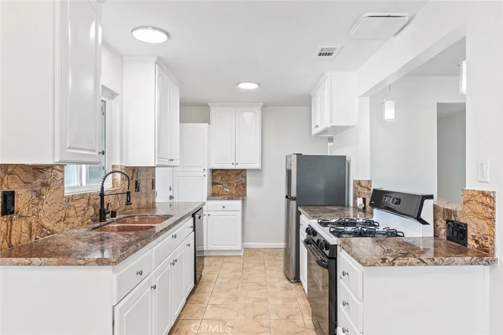 Additional features include an attached garage with built-in storage, fresh paint, washer and dryer hookups, a back door with security screen access to the patio, and direct entry into the kitchen.