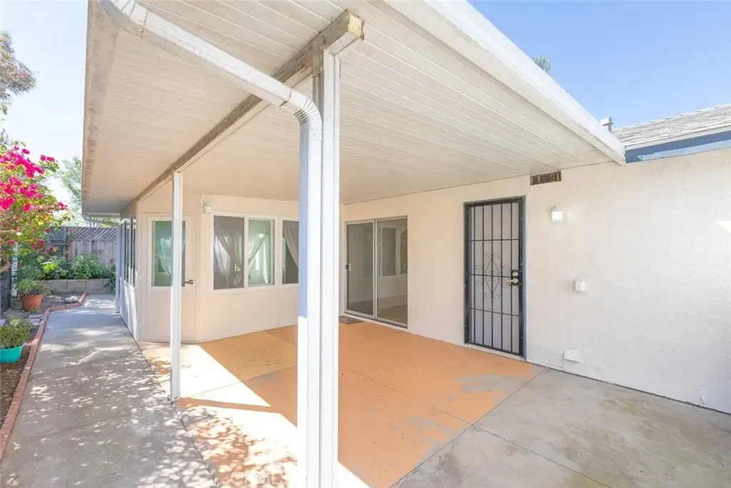 The home has been completely refreshed inside and out, showcasing thoughtful upgrades throughout. The primary suite is generously sized with a large walk-in closet, updated vanity and shower area, and direct access to the sunroom. The secondary bedroom is equally spacious and offers sliding glass door access to a covered back patio.