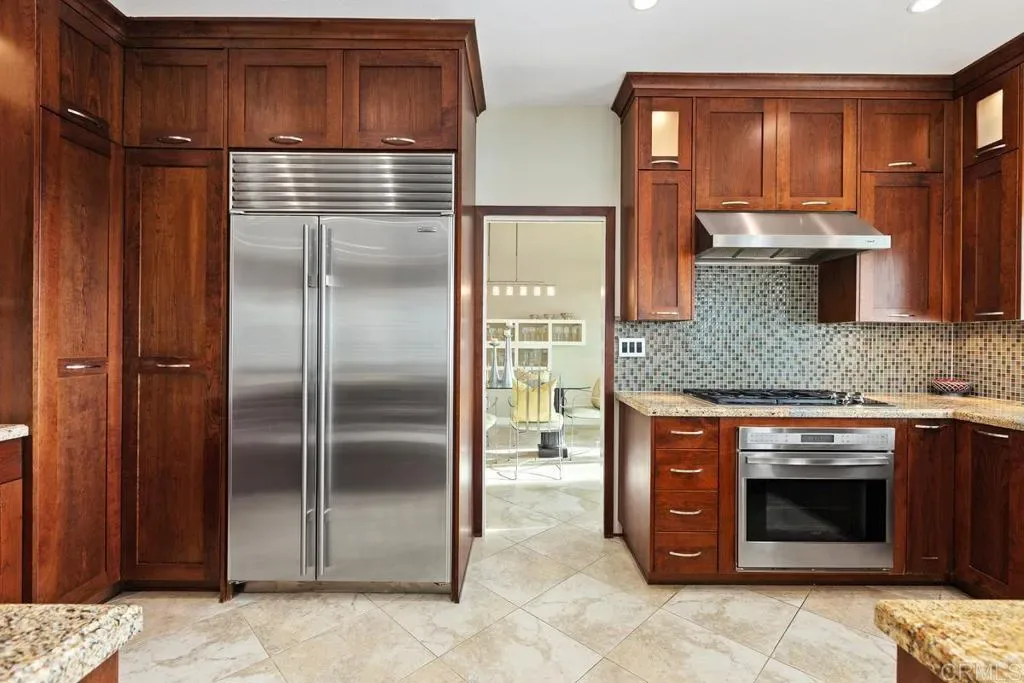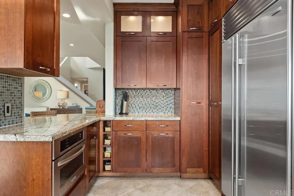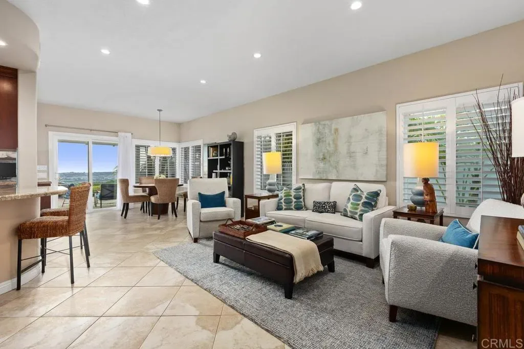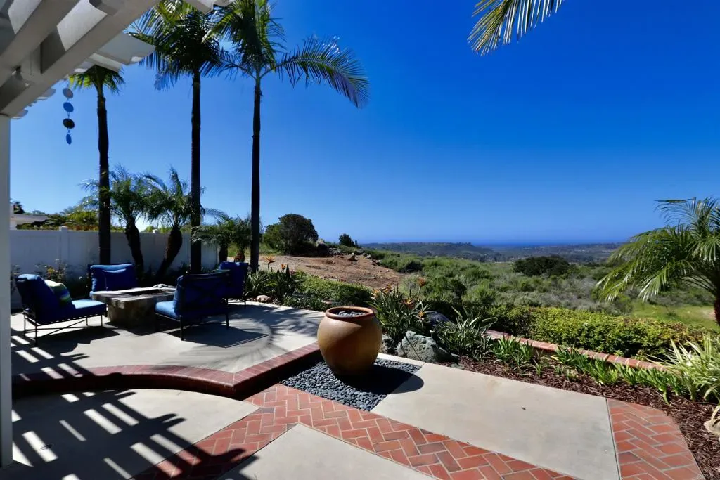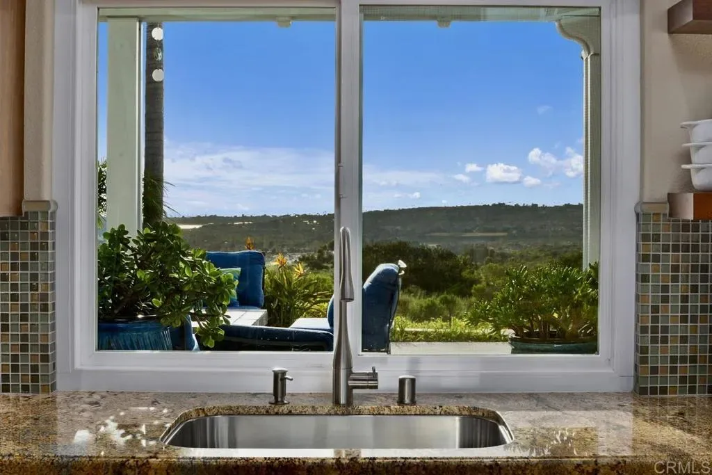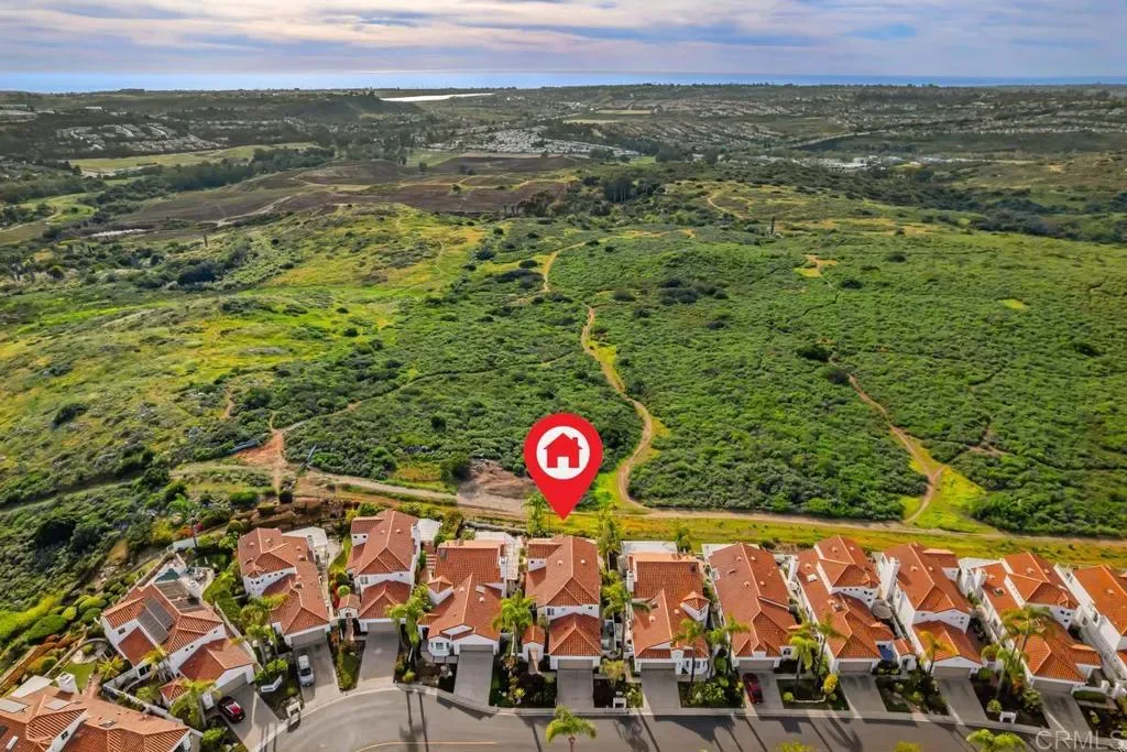 WOW! Enjoy fabulous ocean, canyon, and sunset views from this beautifully updated, move-in-ready “San Remo” model in the resort-style 55+ community of Ocean Hills Country Club. Nearly every inch of this 2,808 sq ft home has been thoughtfully upgraded. From the moment you enter, you are welcomed by abundant natural light and a sense of openness as your eyes are drawn to the expansive canyon and Pacific Ocean views—visible from almost every room. The expanded kitchen offers generous storage with rich, cherry wood cabinetry, granite countertops, and a mosaic tile backsplash. High-end stainless steel appliances include a Sub-Zero refrigerator, Wolf electric oven and gas cooktop, KitchenAid microwave/convection oven, and a Bosch dishwasher—perfect for everyday living and entertaining. This home features three ensuite bedrooms, providing comfort and privacy for both residents and guests. The downstairs ensuite bedroom is beautifully appointed and currently serves as an office and guest room. All bathrooms have been tastefully remodeled with lovely cabinetry, granite countertops, elegant tile surrounds, new toilets, sinks, faucets, and updated lighting. Additional upgrades include dual-pane windows and sliders, shutters, recessed lighting, updated fixtures, and ceiling fans in the downstairs bedroom, primary suite, and upstairs guest room. The spacious primary suite features a large walk-in closet with abundant storage. French doors open to a private upper deck where you can relax and enjoy spectacular views and refreshing ocean breezes. The fully remodeled primary bath includes white shaker cabinetry, granite counters, an enlarged tiled shower, and a separate soaking tub. A big PLUS-a whole-house water filtration system! Outdoor living is equally impressive. The professionally hardscaped backyard offers three inviting seating areas, a built-in gas firepit, tranquil water fountain, Alumawood patio cover, and lush tropical landscaping—creating the perfect setting for relaxing or entertaining while enjoying the stunning scenery. Residents of Ocean Hills Country Club enjoy an active, resort-style lifestyle with amenities including golf, swimming, pickleball, tennis, bocce ball, croquet, and a vibrant clubhouse with a full calendar of social activities. The community is ideally located near shopping, dining, and healthcare facilities for everyday convenience. Don’t miss this exceptional opportunity to enjoy coastal views and resort-style living in a welcoming 55+ community where every day feels like a vacation.