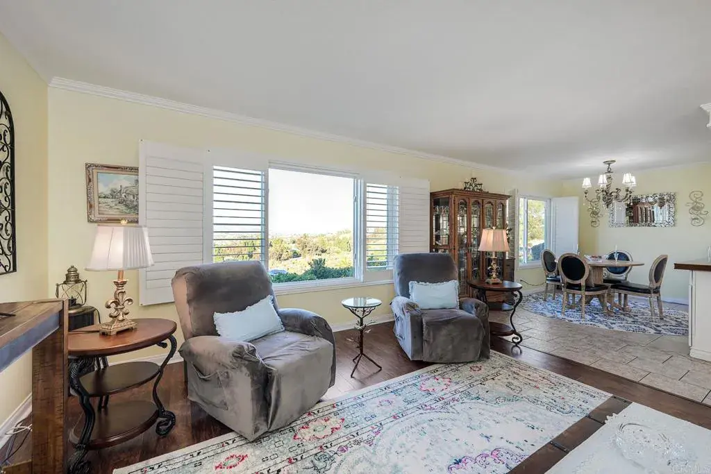 !!!!!~ Breathtaking panoramic views extend across the horizon, showcasing stunning and serene sunsets in a truly private setting. This view-driven residence is tucked away in an exclusive, quiet cul-de-sac and features only one shared wall. An oversized private patio enhances the indoor-outdoor lifestyle. Beautifully maintained, the home offers generous open-concept living spaces filled with exceptional natural light. Located in a desirable 55+ community with convenient access to shopping, dining, and coastal amenities, this property presents an exceptional opportunity to enjoy comfort, functionality, and an elevated North County lifestyle. Townhouse for sale. This is technically a PDU (Planned Development Unit). Since you own the land it sits on, it functions more like a townhouse than a condominium. Easy and accessible financing. Brand-new roof, newer water heater and refrigerator. ~ HOA provides water, trash, sewage, gardener, and cable TV. Cable TV includes several movie channels, plus ESPN.