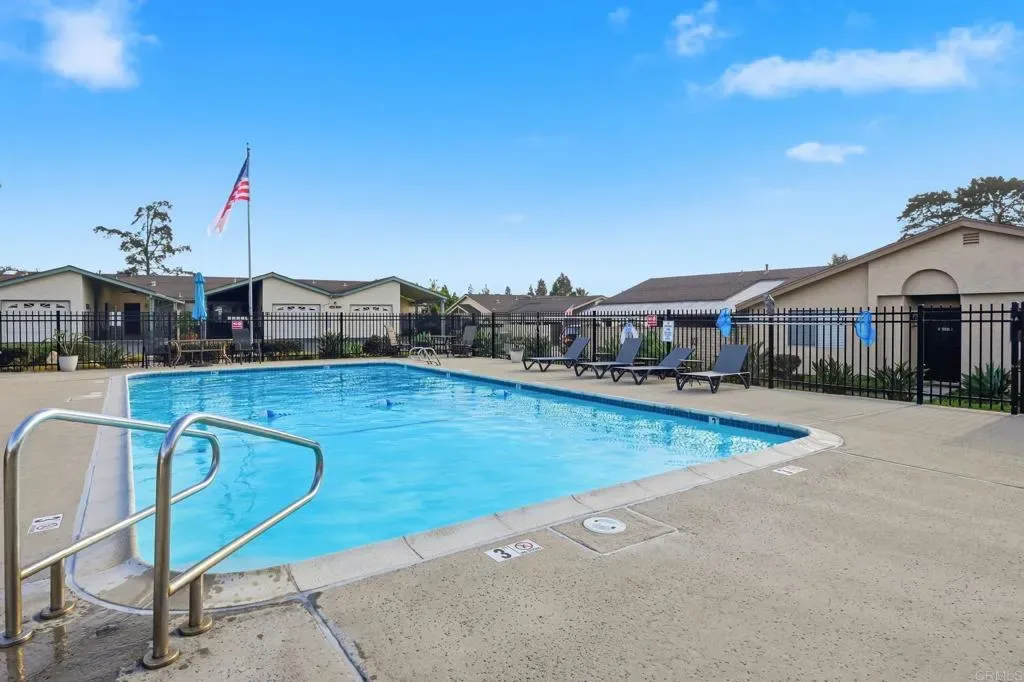 Tucked within the peaceful 55+ Oceana Mission community in Oceanside, this beautifully remodeled home offers a fresh start with style, comfort, and effortless coastal living. From the moment you step inside, you’re greeted by a bright, open living space where natural light pours through large windows, enhanced by elegant plantation shutters and brand-new LVP flooring that flows seamlessly throughout. The heart of the home is a thoughtfully updated kitchen, featuring new countertops, a sleek tile backsplash, and striking two-tone cabinetry, all complemented by stainless steel appliances. Designed for both everyday living and entertaining, it opens seamlessly to the dining and living areas, creating a warm and connected space to gather. The spacious living room invites you to unwind, while the primary suite offers a private retreat with its own ensuite bathroom, complete with dual sinks and a beautifully custom-tiled walk-in shower. A generously sized secondary bedroom and an updated guest bathroom provide comfort and flexibility for family or guests. Step outside to a large covered patio, where a newly added wooden fence facade creates a sense of privacy, perfect for morning coffee, evening relaxation, or hosting friends. Additional conveniences include a one-car garage with washer and dryer hookups. Set within a quiet, well-maintained community featuring a pool and clubhouse, this home is ideally located just minutes from the beach, with easy access to freeways, shopping, schools, and parks, bringing together the best of coastal convenience and everyday tranquility.