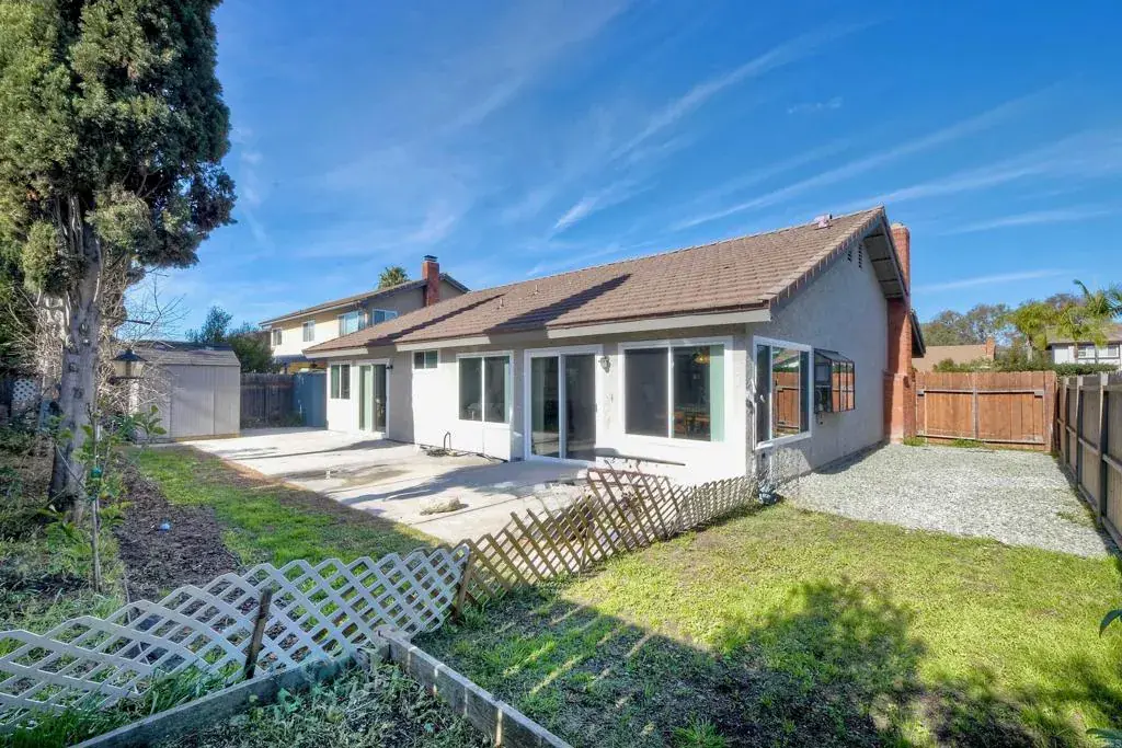 This residence offers a balance of elegance and functionality, beginning with a private, cozy living room featuring a classic fireplace—an inviting retreat separate from the main entertaining spaces. The heart of the home unfolds in the recently remodeled kitchen and dining area, where an open-concept design is enhanced by soaring ceilings and abundant natural light. The kitchen features quartz countertops, stainless steel appliances, and elevated finishes, flowing seamlessly into the dining space and adjacent lounge nook—ideal for sophisticated gatherings or relaxed everyday living. The primary suite is a serene escape, highlighted by high ceilings, a walk-in closet, and a beautifully remodeled en-suite bathroom with modern finishes. Three additional bedrooms provide versatility for guests, a home office, or creative space. New windows and sliding glass doors throughout the home enhance energy efficiency while elevating the home’s overall aesthetic. Outdoors, the property offers exceptional utility with a custom-built 60-foot storage shed, plus an additional shed—perfect for storage, hobbies, or recreational equipment. Residents enjoy a low HOA with access to a nearby community pool. Ideally located near Oceanside Golf Course, the historic San Luis Rey Mission, Camp Pendleton, and just six miles from the beach, this home delivers understated luxury, privacy, and coastal convenience.