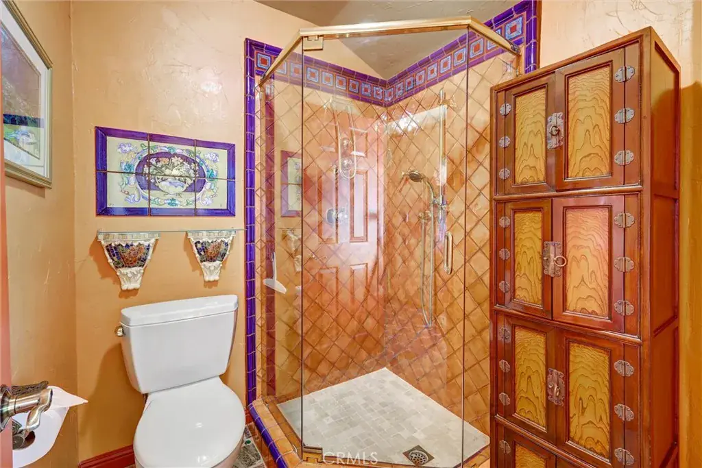 The upper-level suite offers a spacious bedroom, generous closets, and a private bath for comfort and privacy. On the main level, the inviting living room is anchored by a sophisticated gas fireplace and opens through French doors to a charming patio oasis with a relaxing backyard fountain. The downstairs bedroom provides ample storage, while the beautifully updated bath features a sleek walk-in shower and a stand-alone soaking tub—perfect for unwinding in style. The kitchen offers a versatile breakfast nook that can serve as an intimate dining space or a sunlit home office, with a dedicated laundry room just steps away. The home features custom paint and tile floors throughout.