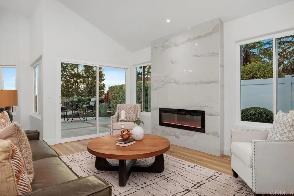 Newly Re-Defined! Sophisticated Single-Story St. Tropez Model (1,800 sq ft) with partial Ocean View! All New Finishes throughout Accent this beautifully situated Cul De Sac Villa with Elevated surrounding views! Gorgeous entry opens to a large, living area with vaulted ceiling and Distressed wood beam with Wagon Wheel lighting over the Dining area. The formal living room boasts a Stunning Calacatta tiled wall with Dramatic Fireplace. The New Kitchen offers lovely Oak Shaker cabinets, Kick Toe lighting, High End stainless steel appliances and Perla Venata Honed Quartzite Counter Tops! The attached Atrium offers wonderful natural light and is adorned with market lighting! The guest bathroom if fully customized with new, modern tiles, vanity and seamless sliding glass enclosure. The Primary Suite boasts designer touches throughout and the bathroom is simply Beautiful! The home is equipped with all new lighting and windows. The rear Patio is set up to be your go to retreat for relaxing, viewing, entertaining and outdoor dining! Enjoy the soothing ocean breezes and calming views! Perfect for those Summer nights. All this and Much More in the Iconic 55+, Resort Style Community of Ocean Hills Country Club! Enjoy Golf, Pickleball, Bocce Ball, Swimming, Walking, Fitness Center, Billiards, Tennis, Dancing, concerts and many other Events and activities right out your front door!