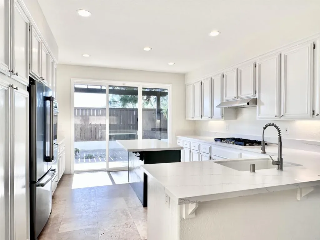 Welcome to 5155 Via Seville in Broadmoor Hills in Ocean Hills, one of North County San Diego’s most coveted communities. Nestled on a quiet cul-de-sac, this beautifully refreshed 3-bedroom, 2.5-bath home with loft offers 2,456 square feet of sun-drenched living space and the kind of versatile, move-in-ready canvas that today’s buyers dream of finding. From the moment you step inside, soaring vaulted ceilings and an open floor plan invite you to imagine the possibilities. Fresh and ready for its next chapter, this home is a true blank slate just waiting for your personal touch. Travertine tile flows throughout the main level, grounding the family room, dining room, living room, kitchen, and laundry in understated elegance. The spacious kitchen features a large island, stainless steel appliances, and a double oven, with sliding doors opening to a covered patio, perfect for seamless indoor-outdoor California living. Beyond, a fully fenced private backyard offers endless potential: an outdoor kitchen, entertainment oasis, or play space where the whole family can enjoy the gentle coastal breezes that roll in each afternoon. Upstairs, the generous primary retreat is a true sanctuary complete with a secondary flex space ideal as a sitting room, home office, or nursery; a private balcony with peek-a-boo ocean views; a walk-in closet; and an oversized dual-head walk-in shower. Two additional bright, sizable bedrooms share a convenient jack-and-jill bath, and a loft with closet rounds out the upper level, equally suited as a home office, homeschool room, playroom, or guest retreat. Equally valuable are the “little” things: the oversized two-car garage, three-car-wide driveway, large laundry room with utility sink and cabinetry, additional linen closets and storage throughout, and pull-down attic access to a large space for stashing the seasonal decor. The ultra low maintenance landscaping thrives on neglect, and is ready to be expanded to suit any green thumb. The location just adds to the appeal: Lake Elementary, Madison Middle, and Rancho Buena Vista High are all just minutes away, as are parks, hiking trails, and the best stretches of the North County coast. A low HOA of just $83/month provides a gated dog park, picnic areas, and access to coveted RV and boat storage. With I-78 at close proximity, Carlsbad and downtown Oceanside are a quick shot to the west, San Marcos and Escondido to the east, and I-5 and I-15 keep the rest of San Diego well within reach to the south, and OC/LA/Temecula to the north. Come take a look, fall in love, meet the neighbors, and settle in just in time for summer in beautiful North County San Diego.