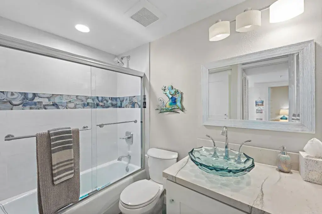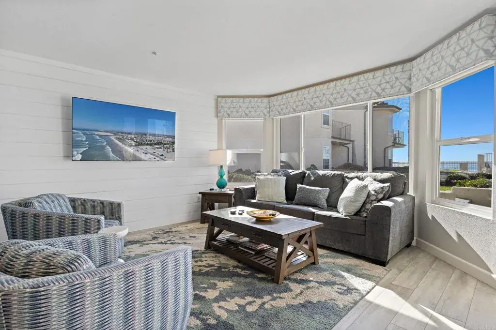 Furnished Vacation Rental on THE STRAND. Breathtaking Ocean Views!! Remodeled 2 bed/2 bath on the ground floor at the San Miguel 1 Building. HUGE patio for entertaining. No stairs required. Everything included for the perfect stay – just bring your suitcase and sunscreen. 2 queen beds, in unit laundry, and underground parking. One month minimum stay required – three months preferred. Condo includes utilities*, streaming TV’s, and WIFI. Owner pays SDGE cap of $100/mo. Rent and security deposit vary depending on months stayed and length of stay. $275 cleaning fee, plus $100 reservation fee. Summer pricing (June-September) is $6,500/mo. Pricing for 2027 will increase by $150 per month. Call for availability.